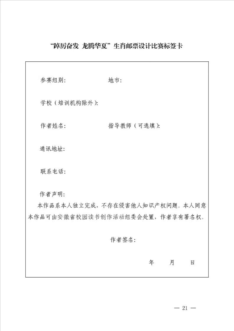 根据安徽中医药大学第七届校园读书创作活动有关要求,现将“踔厉奋发 龙腾华夏”生肖邮票设计比赛有关事项通知如下: