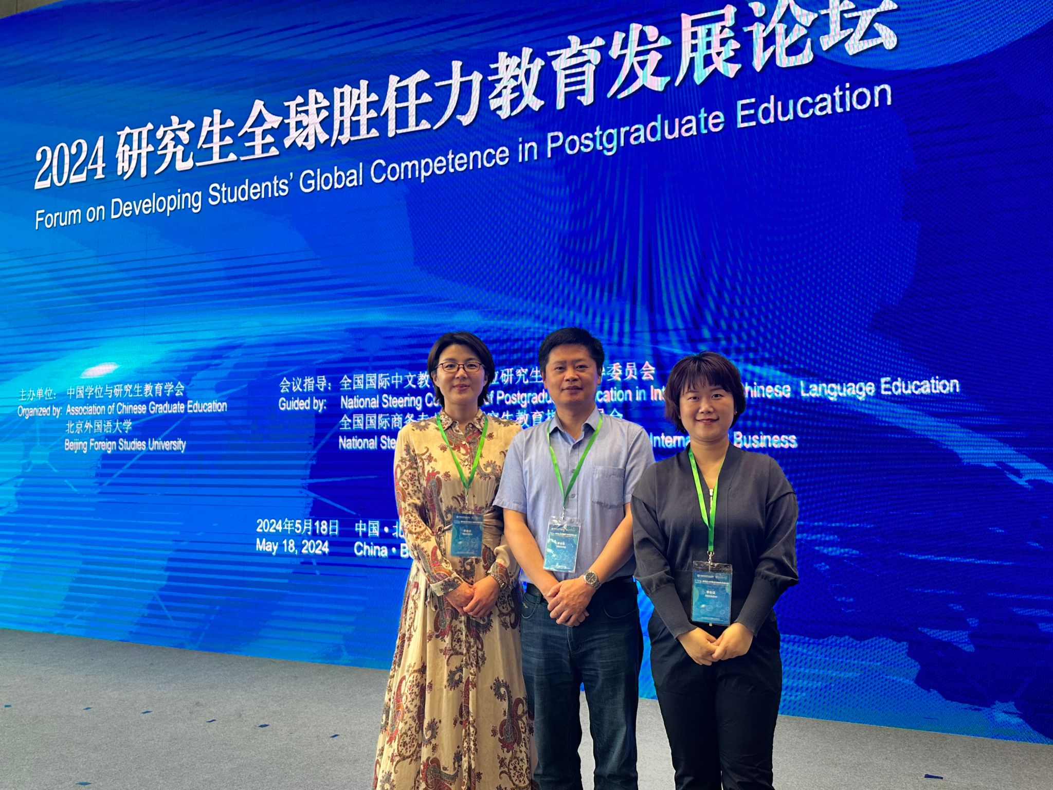 5月18日,由北京外国语大学和中国学位与研究生教育学会主办的2024研究生全球胜任力教育发展论坛在北外国际会议中心隆重举行。论坛以“研究生国际理解与全球胜任力培养”为主题,为全国研究生培养单位探索研究生全球胜任力培养模式,加快培养更多具有全球视野的复合型、创新型高层次人才,搭建相互学习和交流的平台。我校人文与国际教育交流学院副院长张筱荣、汉语国际教育系主任张雷平、教师李柔冰参与了此次论坛。