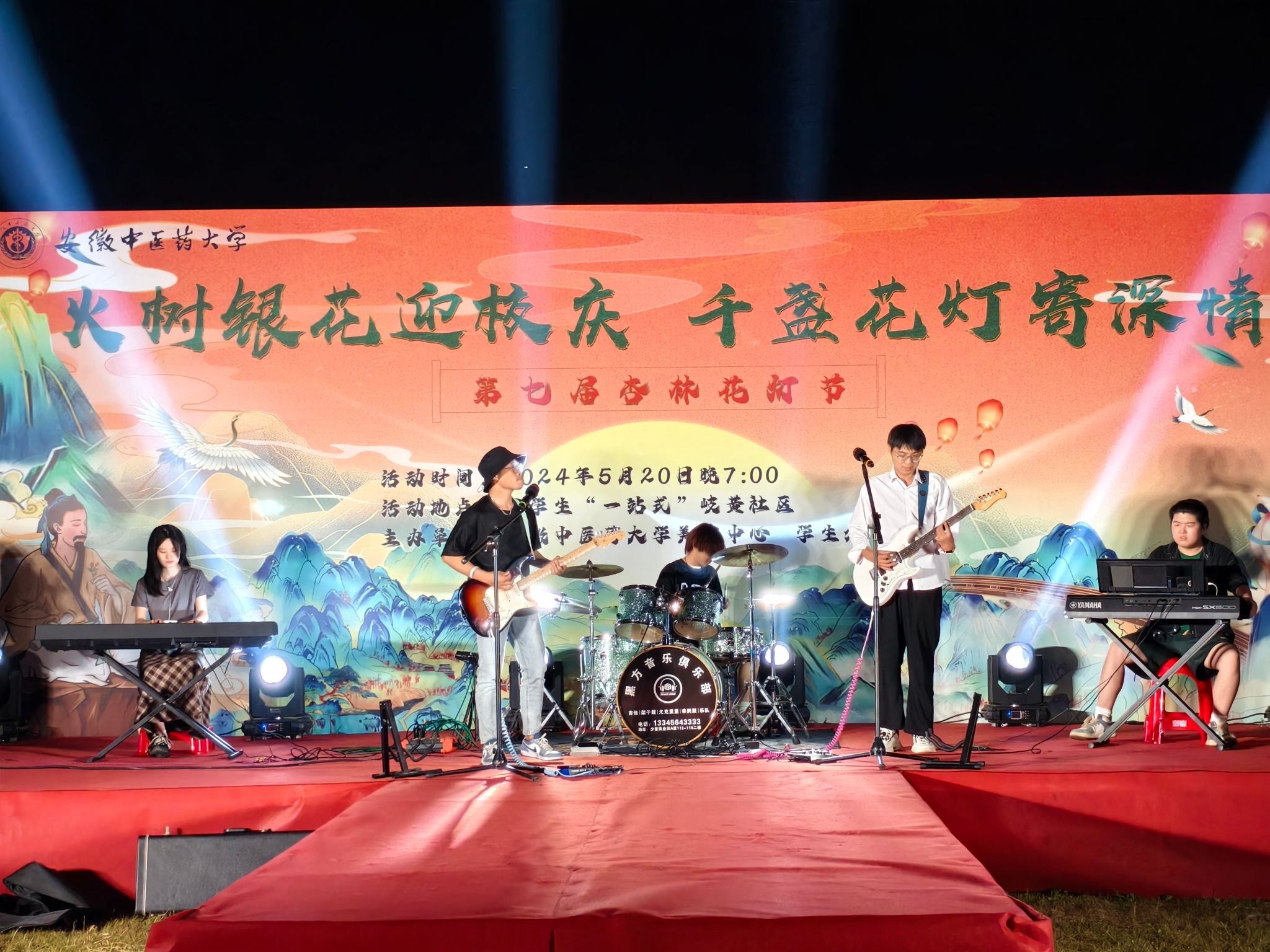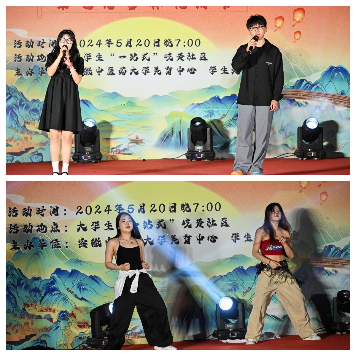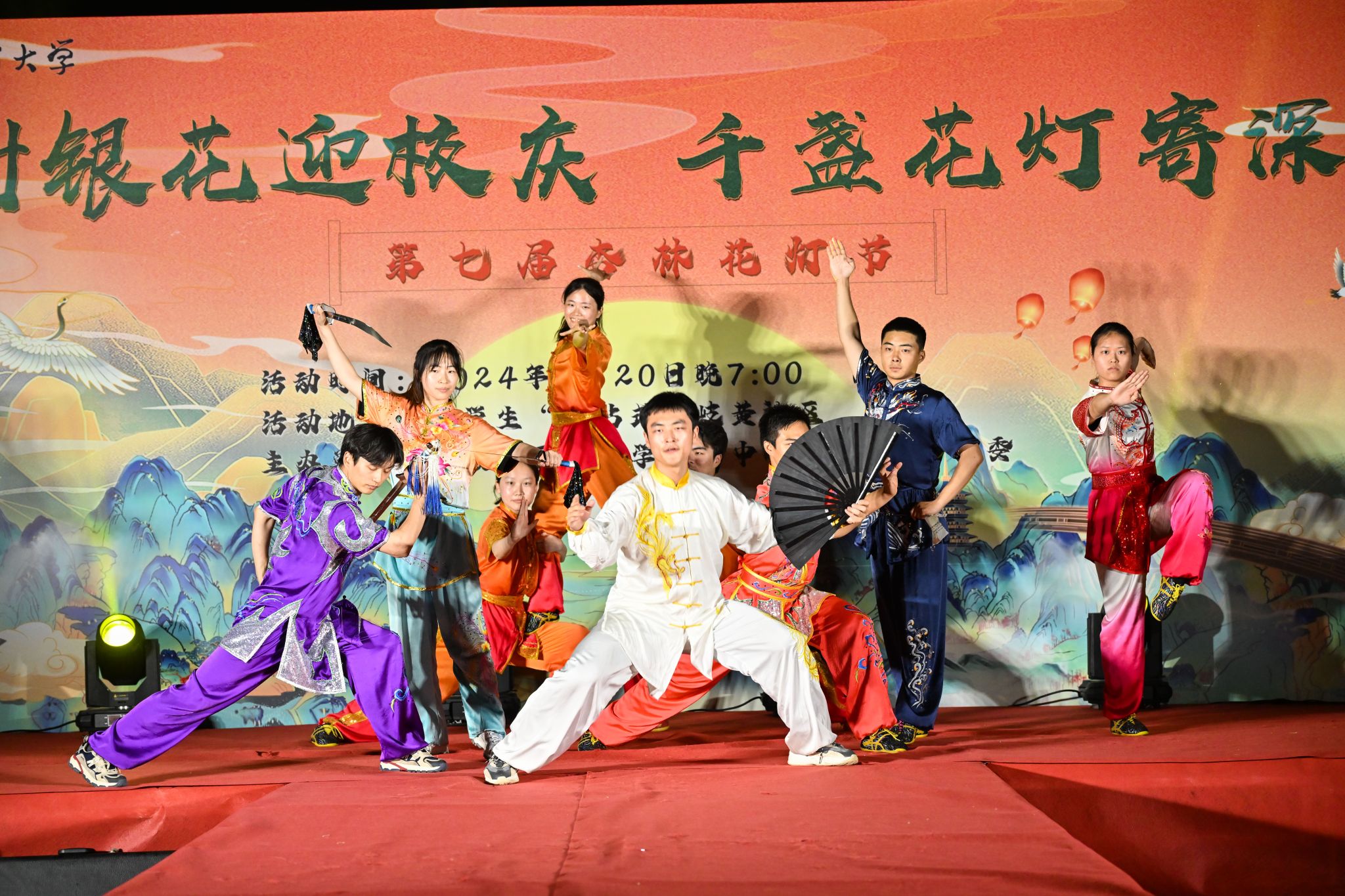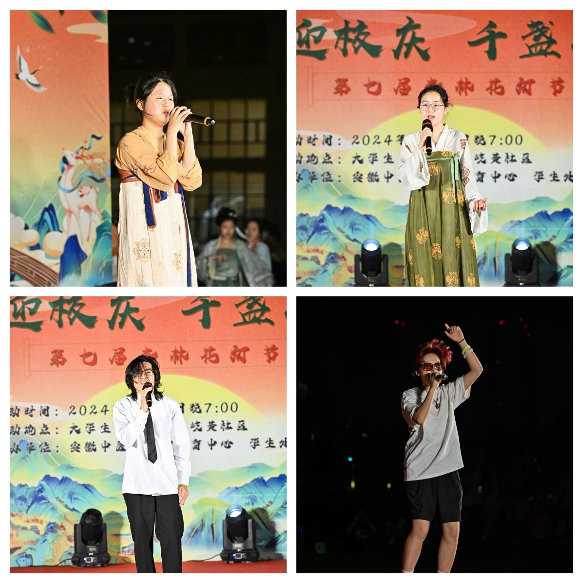 夜幕降临,华灯初上。晚上七点整,1000盏花灯次第点亮,花灯大赏拉开帷幕。各艺术俱乐部和学生社团带来精彩的文艺演出。阿司匹林乐队和K歌俱乐部带来激情四射的摇滚音乐和歌曲串烧;舞蹈社团的《九州同》《烟雨繁花》回袖沐春风,歌扇当窗似满月,《爵士串烧》《illusion》传统与现代奇妙融合,呈现出一场绚烂多彩的艺术之旅;精彩的武术表演和国学社特别策划的汉服走秀活动将演出推向高潮,让同学们感受到中华传统文化的魅力。