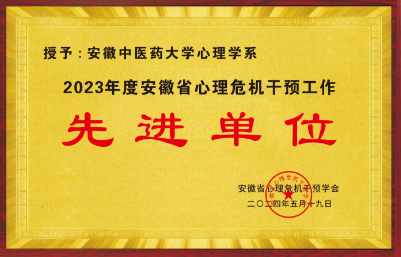 会上,我校心理学系荣获“2023年度安徽省心理危机干预工作先进单位”荣誉称号。近年来,心理学系紧紧围绕“中医药+心理”特色方向,积极开展“中医心理康复”、“认知障碍与心理干预”和“智能化心理危机识别”等多学科交叉研究,取得了多项突出的科研成果,培养了一大批应用心理学专业人才。