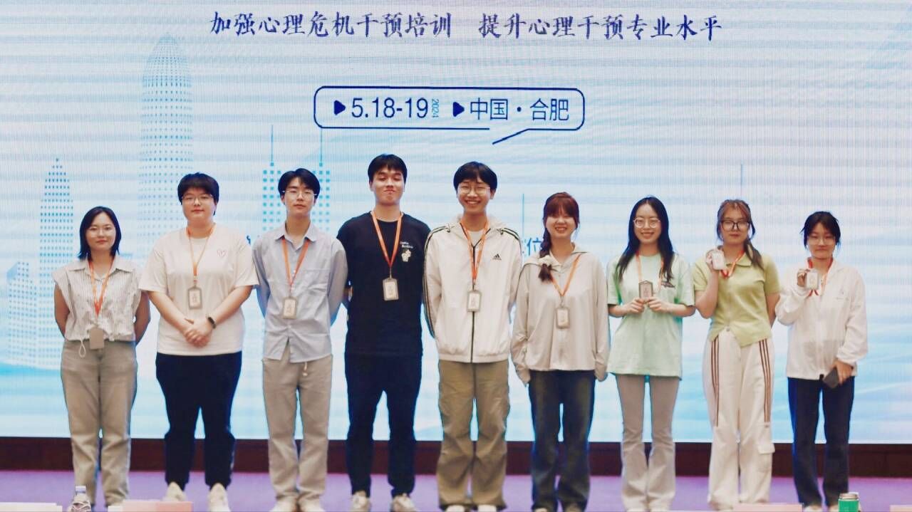 5月18日至19日,安徽省心理危机干预学会2024学术年会暨心理危机干预技能专题培训在合肥召开。大会由安徽省心理危机干预学会主办,安徽心思为心理咨询有限公司承办。人文与国际教育交流学院心理学系教师代表许胜、张航参加会议;应用心理学专业9名本科生作为志愿者参与会议并圆满完成志愿服务工作。