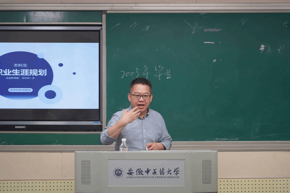 讲座上,沈奎和同学们分享了自己的创业历程,如何从一位医生到集团公司的负责人,如何做好自己的人生职业规划;在如何制定职业规划方面,沈奎建议同学们要从自身的兴趣、特长、价值观出发,结合市场需求和行业发展趋势,制定切实可行的职业规划。讲座上,沈奎还分享了自己对于就业与考研的看法,并向学生们提供了备考建议,强调从大三开始备考的重要性,并提醒学生们要重视英语学习,同时重视选择合适的学校和导师的重要性,为学生们的未来发展提出了宝贵的建议。