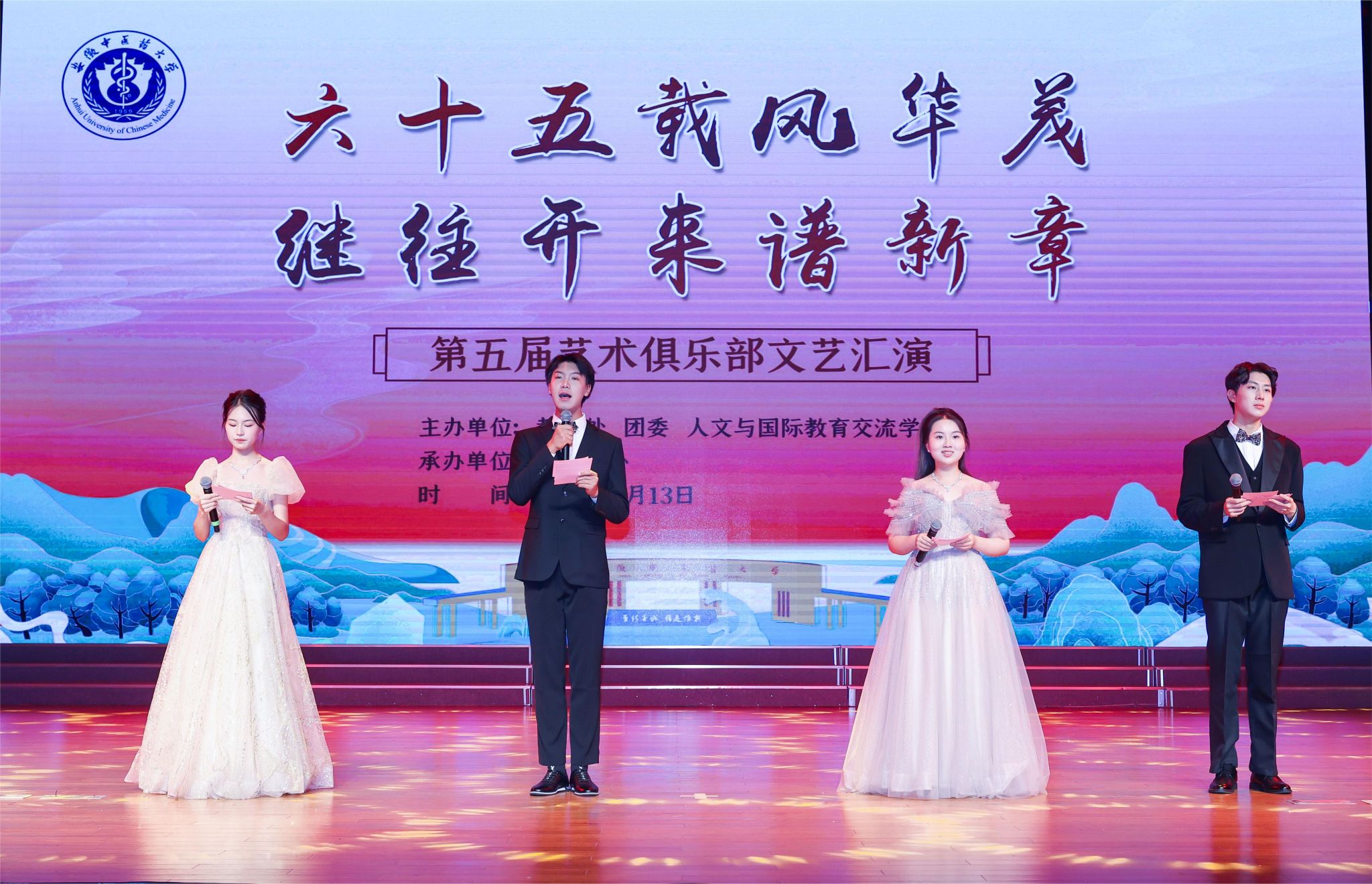 六十五载风华茂,继往开来谱新章。喜值学校65周年校庆之际,为深入学习宣传贯彻党的二十大精神,推进我校艺术俱乐部制教学改革,加强美育课程建设,引导大学生弘扬中华美育精神,践行社会主义核心价值观,提高学生审美和人文素养。6月13日晚,安徽中医药大学庆祝建校六十五周年第五届艺术俱乐部文艺汇演在少荃湖校区大学生活动中心隆重举行。学校党委副书记、校长许钒,教学督导尤吾兵,光明日报记者丁一鸣、中国教育报记者方梦宇、安徽青年报记者张华、合肥晚报记者卜方伟,学生处处长冯祥、宣传部副部长张磊、教务处副处长张晓军、教育教学质量评价中心副主任许晓燕等出席并担任汇演评委,学校各二级学院相关负责人、艺术俱乐部指导教师及同学观看演出活动。