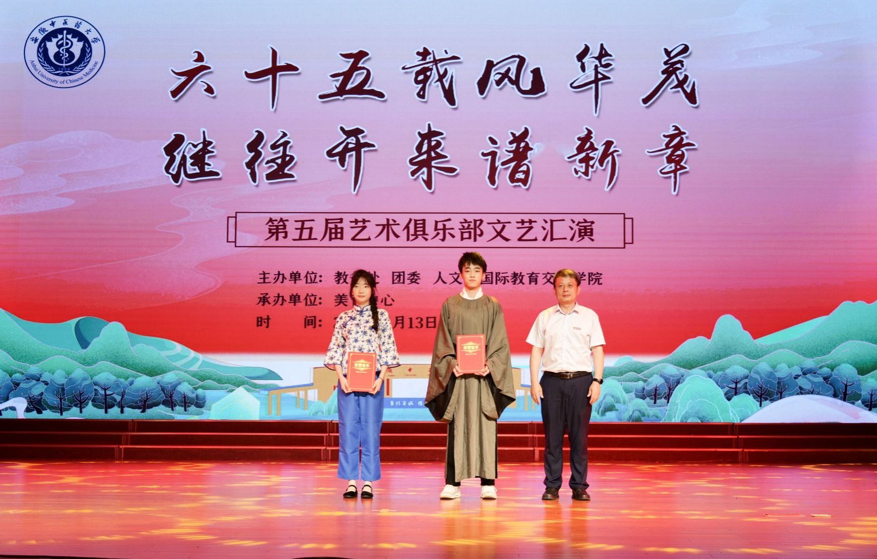 许钒校长在点评时指出,今晚的文艺汇演适逢安徽中医药大学建校65周年,艺术俱乐部师生通过文艺汇演表达对母校的祝福,这是一场艺术与中医药的碰撞之旅,同时也是学校推行艺术教育俱乐部教学改革的成果展示。今晚我看到了安中学子多才多艺的一面,同学们学习中不仅有医和药,还有音乐和色彩,大家在艺术俱乐部中学到艺术本领,丰富学习乐趣,以文艺汇演的形式学习知识,寓教于乐,寓学于乐,开阔视野,探索艺理,躬身实践,同时彰显学校中医药特色。期待学校美育教学改革更上一层楼,为打造“以美育人、以文化人”的育人环境贡献智慧和力量。