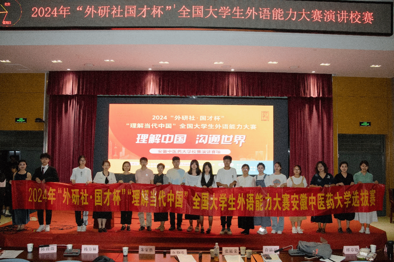 9月29日晚,2024年“外研社·国才杯”“理解当代中国”全国大学生外语能力大赛演讲大赛在安徽中医药大学少荃湖校区A114报告厅举办,全校共128名选手报名初赛,21名选手从学院初赛中脱颖而出,同台竞技,用英语讲述中国龙的传说,展现举世瞩目的中国发展,尽显兼济天下的世界情怀。