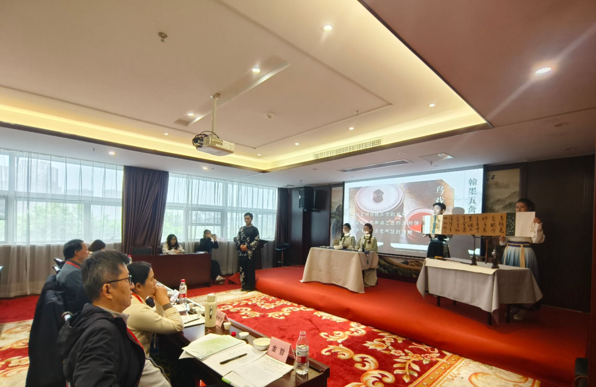 大赛由茶文化知识竞赛(占总成绩20%)、创意茶艺表演(占总成绩40%)、茶文化创新作品(占总成绩40%)等三部分组成。我校团队历时两个月的准备,将中医药文化特色融入茶文化中,五禽戏的灵动、书法的韵味与茶文化的雅致完美融合,呈现视觉与心灵的盛宴,同学们在品茗之间、挥毫之际各展所长,展示了我校学子深厚的文化底蕴和过硬的综合素养。