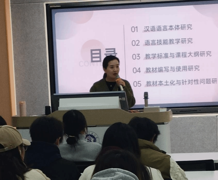 其后,许曼萍老师从实践能力培养的角度出发,分享了探究式学习在汉语国际教育中的应用案例,她指出:“通过探究式学习,学生能够更深入地理解汉语的复杂性和多样性,这对于他们未来的教学工作至关重要。”之后,许曼萍老师进一步围绕“选题”这一主题跟同学们探讨了“汉语国际教育专业学生如何进行科研选题”,以及“科研论文或科研项目书题目如何拟定”这两个话题展开讨论,为学生提供了如何精准定位研究目标、如何确保题目的创新性和原创性、以及如何使题目简洁清晰且具有吸引力的实用技巧。