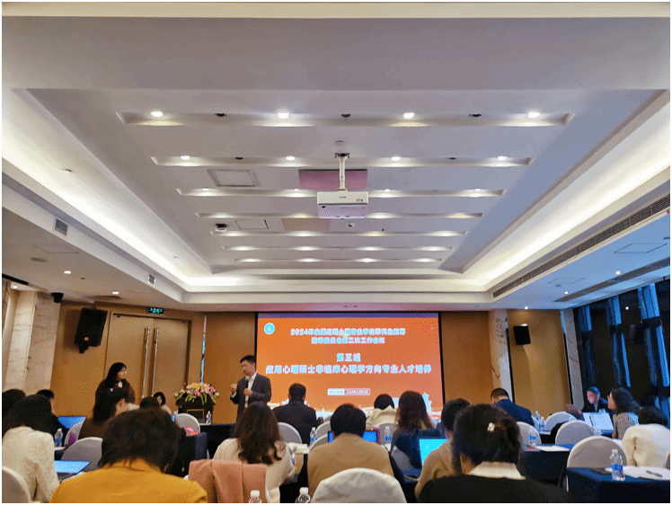 在大会主旨报告环节,全国应用心理专业学位研究生教育指导委员会委员、南京师范大学心理学院陈庆荣教授以《认真学习领会落实全国教育大会精神 提升应用心理专业学位研究生培养质量》为题,深入解读了全国教育大会精神对应用心理专业学位研究生培养的指导意义,并提出了针对性的发展建议。此外,教指委委员、上海交通大学医学院附属精神卫生中心李春波教授,清华大学心理与认知科学系张丹副教授分别介绍了各自单位在应用心理学专业学位研究生培养中的特色经验,包括行业需求导向的课程设计、实践教学创新等内容,为参会单位提供了丰富的参考案例。