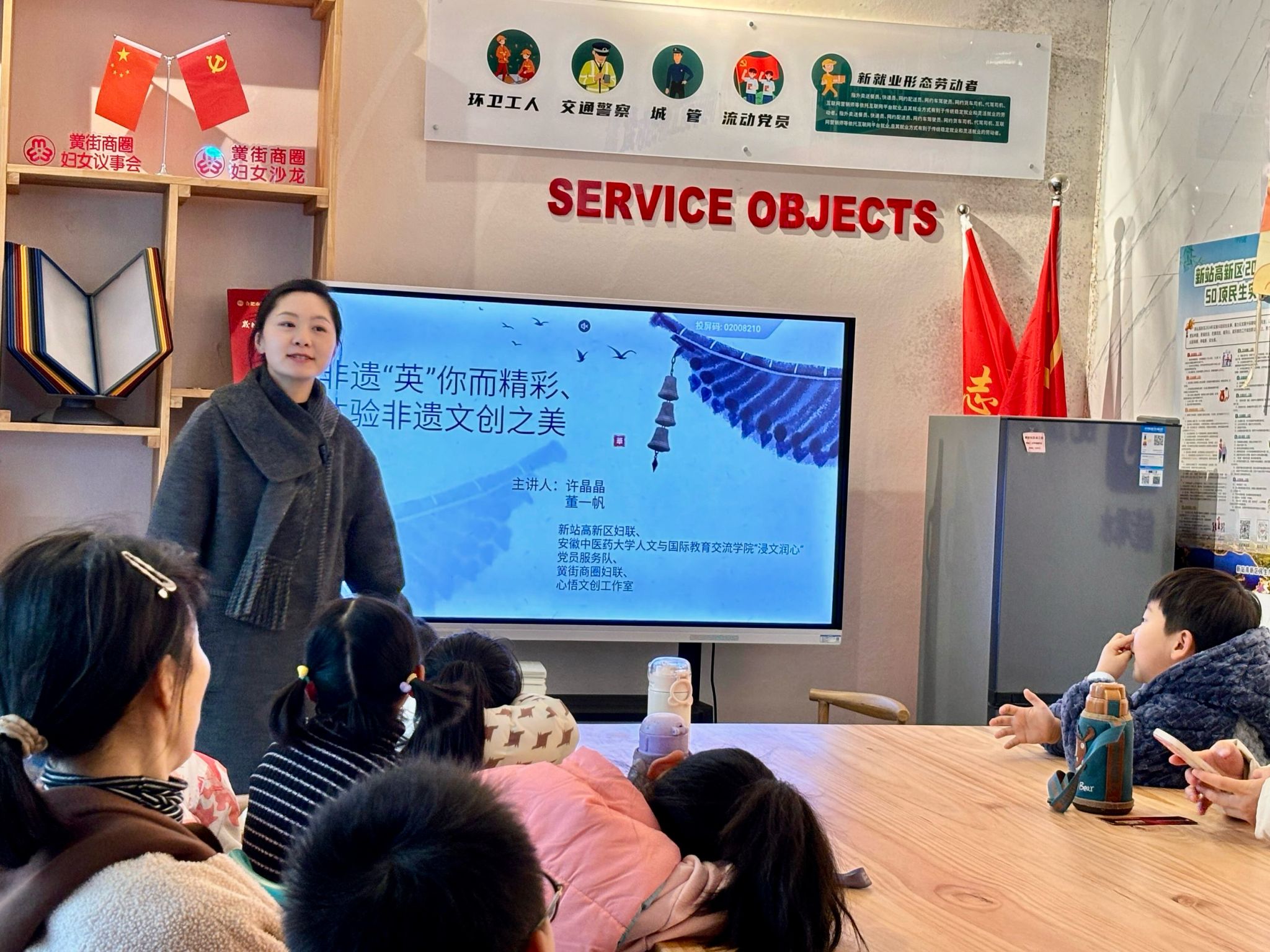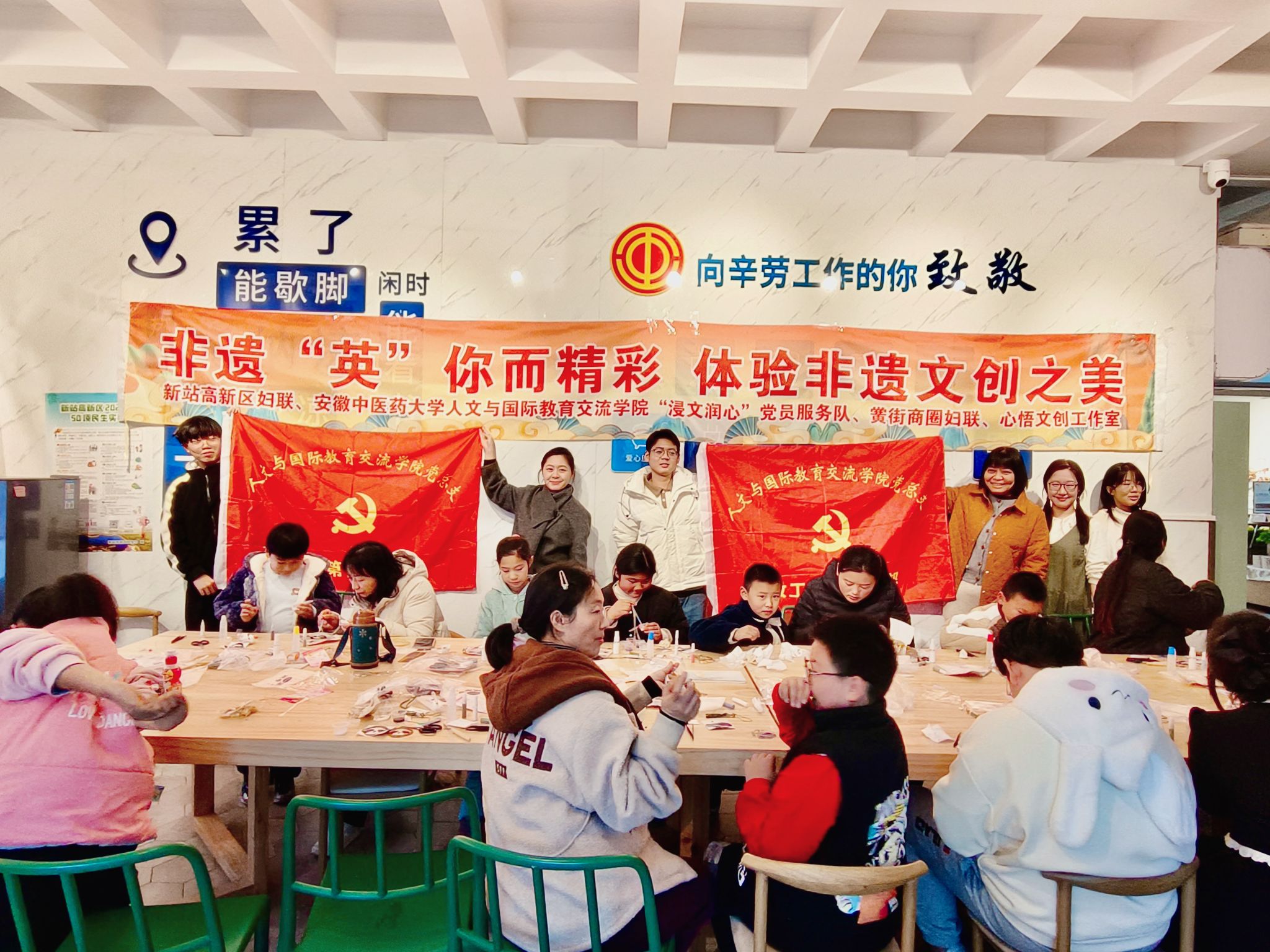 为充分发挥高校党建引领作用,促进非遗文化传承与交流。11月30日,安徽中医药大学人文与国际教育交流学院党总支与新站高新区妇联、黉街商圈妇联、心悟文创工作室联合开展非遗“英”你而精彩,体验非遗文创之美活动。