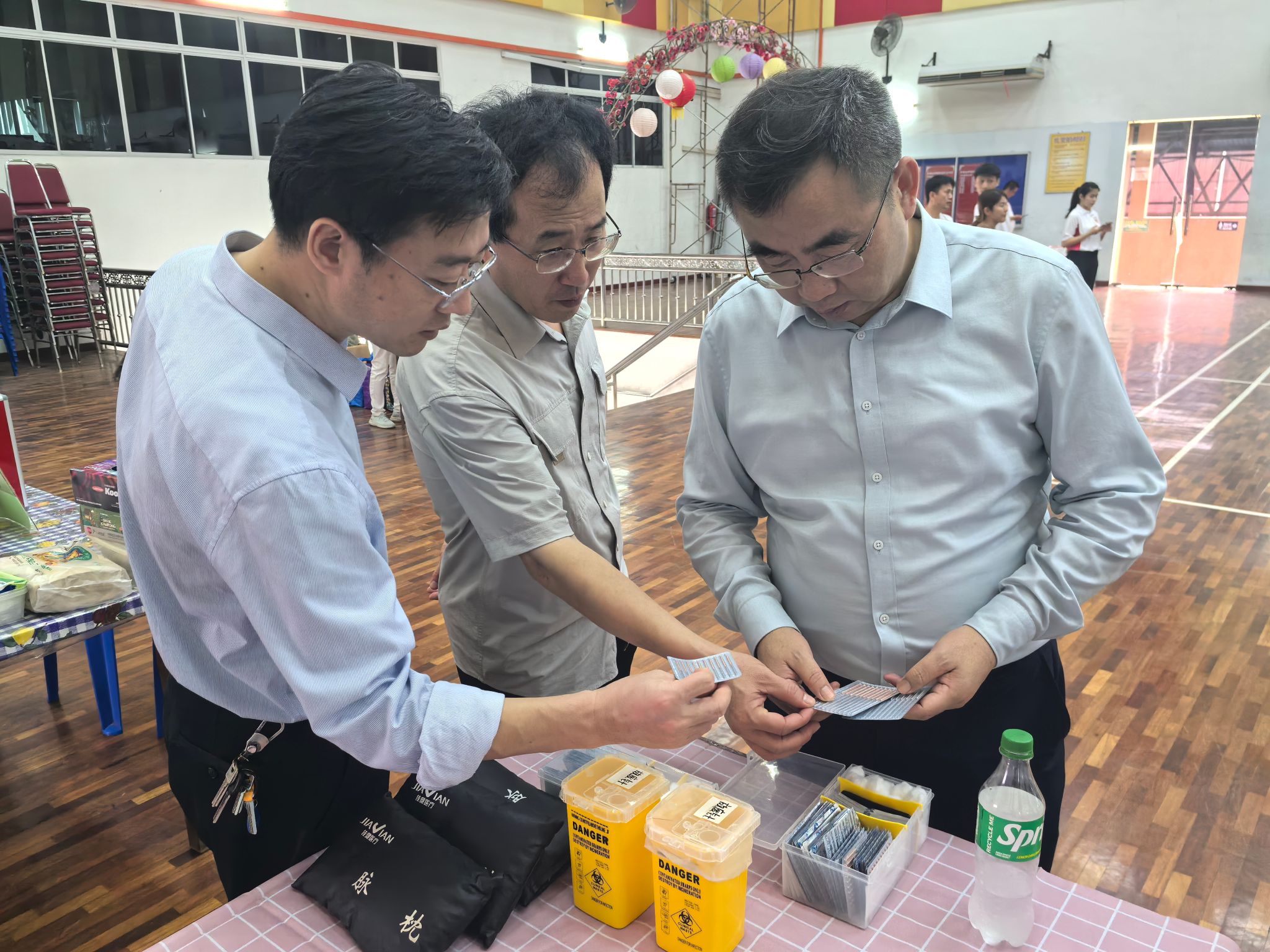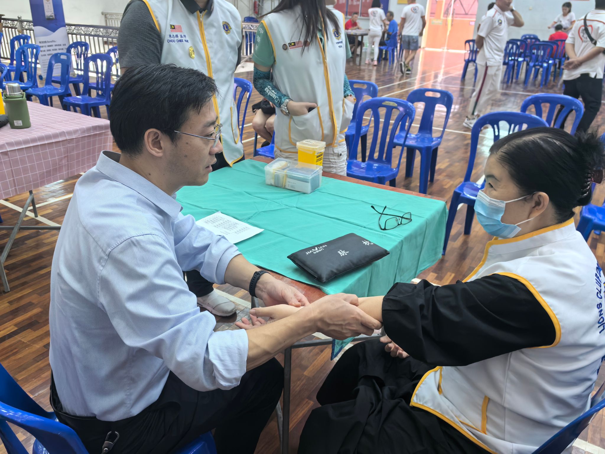 访问期间,代表团专家还跟随马来西亚保民针灸骨伤医药中心义诊服务团深入当地华人小学开展中医诊疗工作。在义诊现场,专家们与当地义诊医生进行了深入交流,共同探讨更加有效的治疗方案,并手把手进行技能指导,体验热敏灸理疗,提升了我校在马来西亚中医界的知名度和认可度。