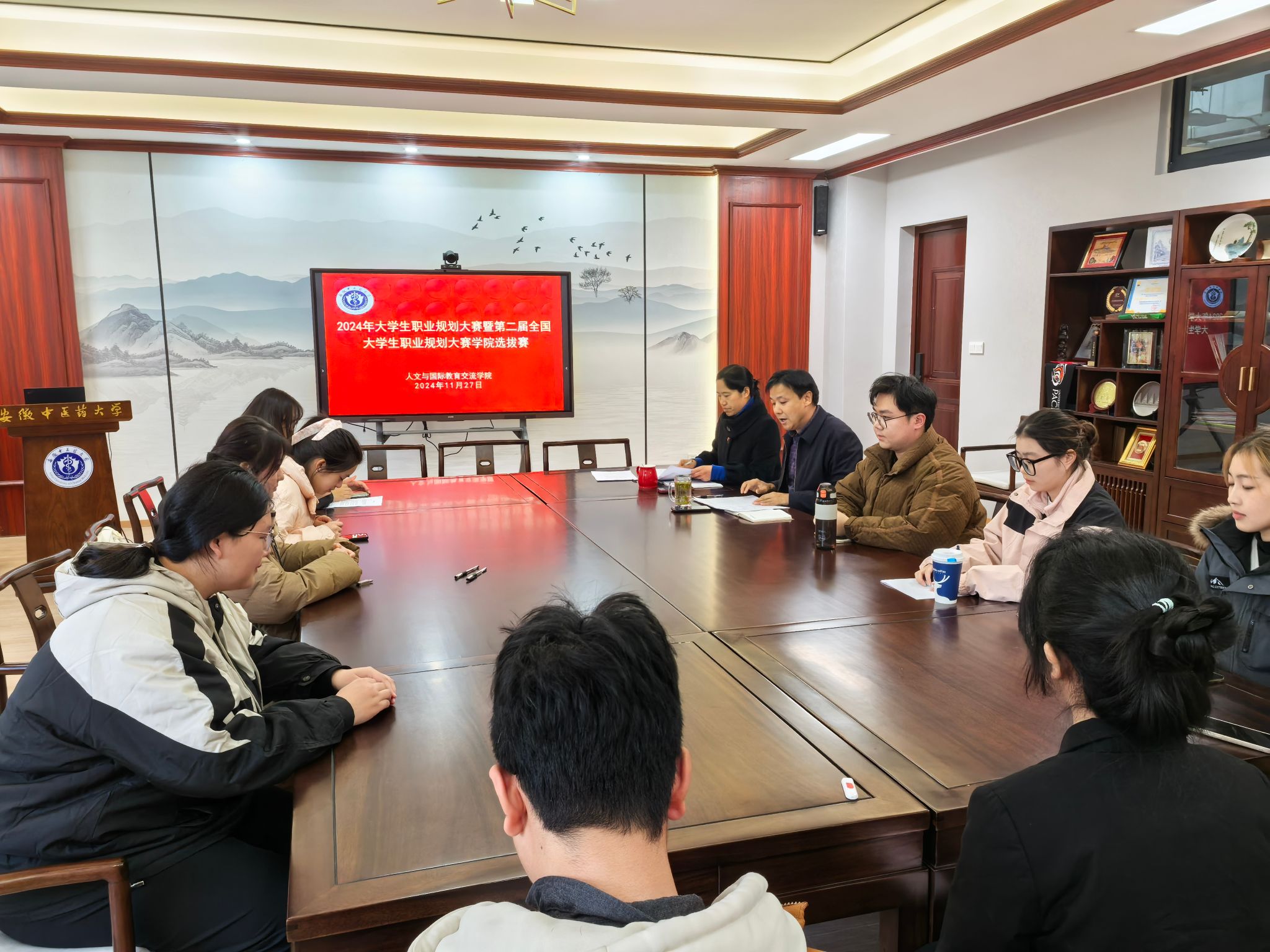 为提高学校生涯规划与就业指导工作水平,增强学生职业规划意识,指导其及早做好就业准备,以择业新观念打开就业新天地,促进高质量充分就业,近日,人文与国际教育交流学院在惟新楼292会议室开展职业规划大赛院内选拔赛。学院党总支副书记、实习就业办主任、往届国家级职业规划比赛获奖者担任评委,学院各年级十余位学生参加本次院内选拔赛。