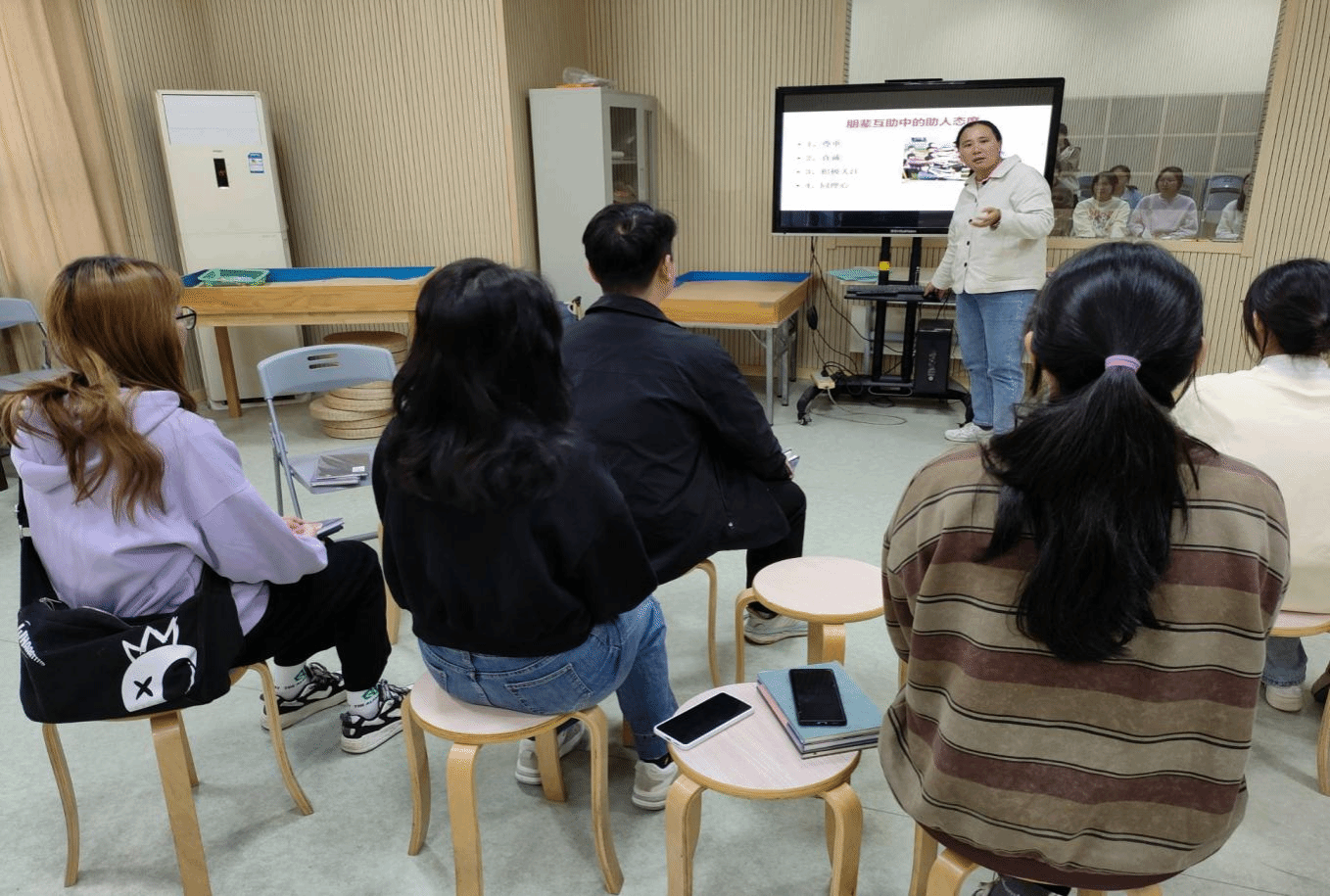 两次培训详细讲解了朋辈心理互助中的助人态度以及如何成为一名好的“倾听者”。通过案例演示以及生活中的情境,带领心理骨干们去感悟和领会所授知识,使知识生活化,以利于学习者的理解和应用。