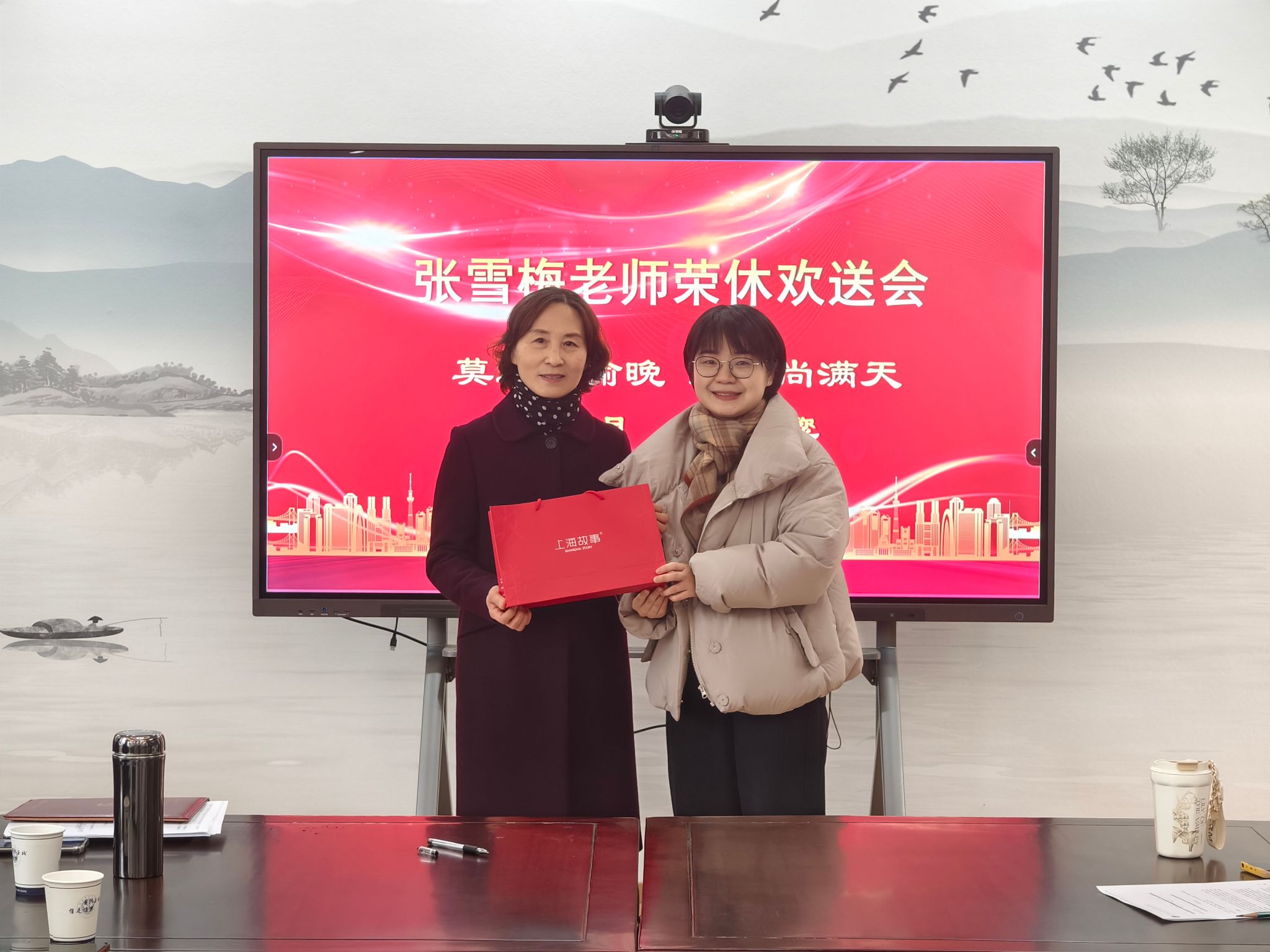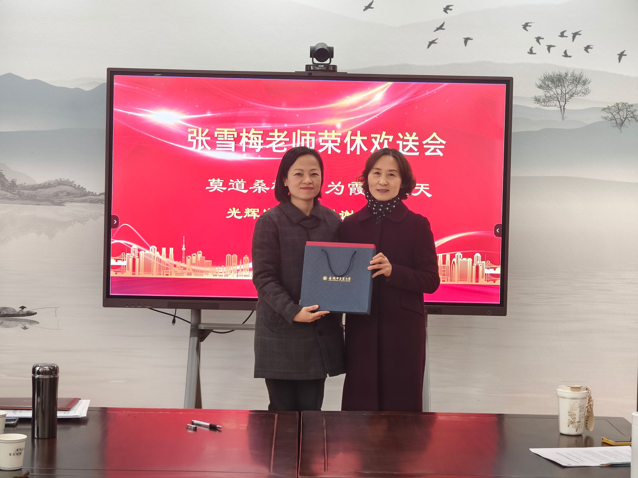 学院党总支书记金晓琴和工会主席黄汉瑛向张老师赠送了荣休纪念品和荣休礼物。