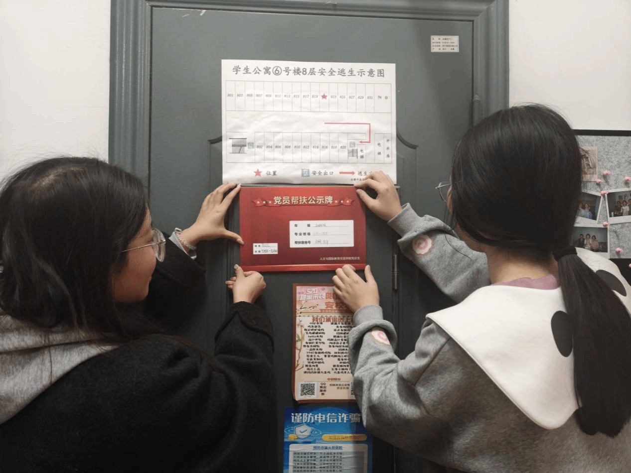 活动期间,学院学生党员前往低年级学生宿舍进行走访,实行“一人一宿”承包责任制,每位学生党员负责一个宿舍的全方位帮扶,确保责任明确,帮扶到位。此外,我们在宿舍门口设置帮扶公示牌,公开帮扶党员的基本信息及联系方式,既增强责任感,又便于接受全体同学的监督与建议。