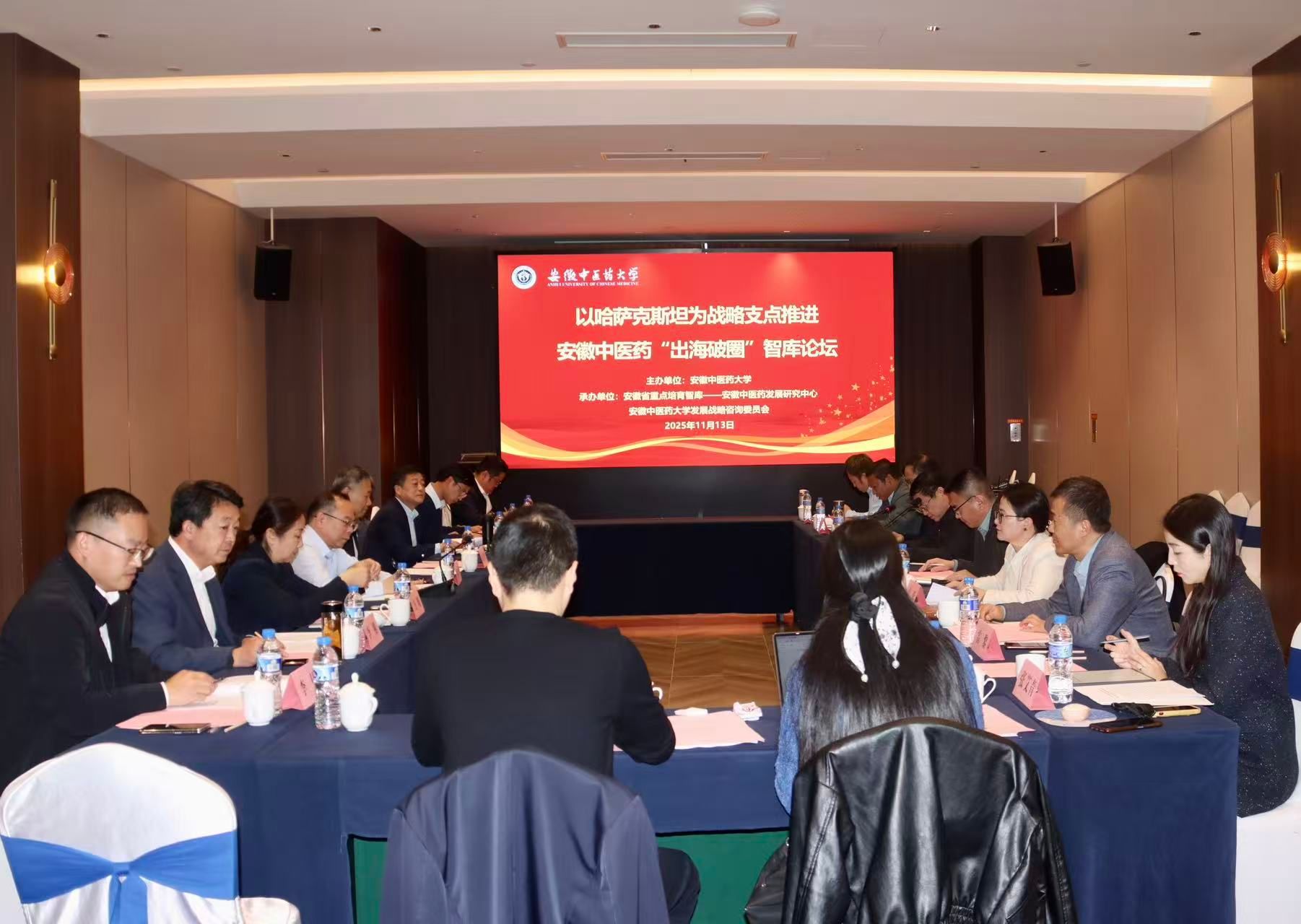11月13日下午,学校召开“以哈萨克斯坦为战略支点 推进安徽中医药‘出海破圈’”智库论坛。省政协教科卫体委员会副主任田希伟,省政府参事室党组成员、副主任梁冰,省外事办经济服务处处长李红洲,省政府参事室副馆长、一级调研员方略,学校党委书记谢瑞瑾,省中医药管理局、亳州市政府、黄山市卫健委、济人药业,学校党政办公室、发展改革处、外事办、第一附属医院、第二附属医院、药学院、针灸推拿学院等相关负责人出席论坛。