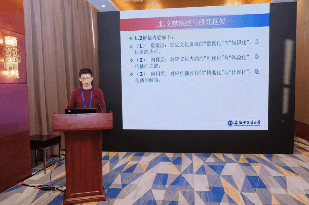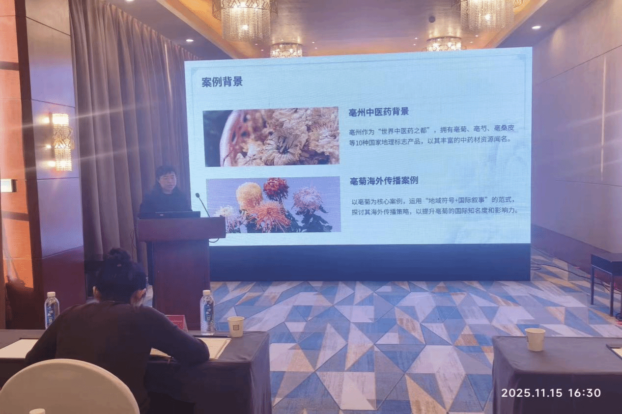 李静老师在分论坛中作了题为《跨文化视域下安徽中医药国际传播范式研究》的学术汇报。她以安徽中医药“南新安,北华佗”的文化特色为切入点,系统剖析了中医药国际传播中“文化折扣”与“渠道碎片化” 等现实困境,提出“地域符号 + 国际叙事”的创新传播模式,为地域特色文化“走出去”提供了新思路。