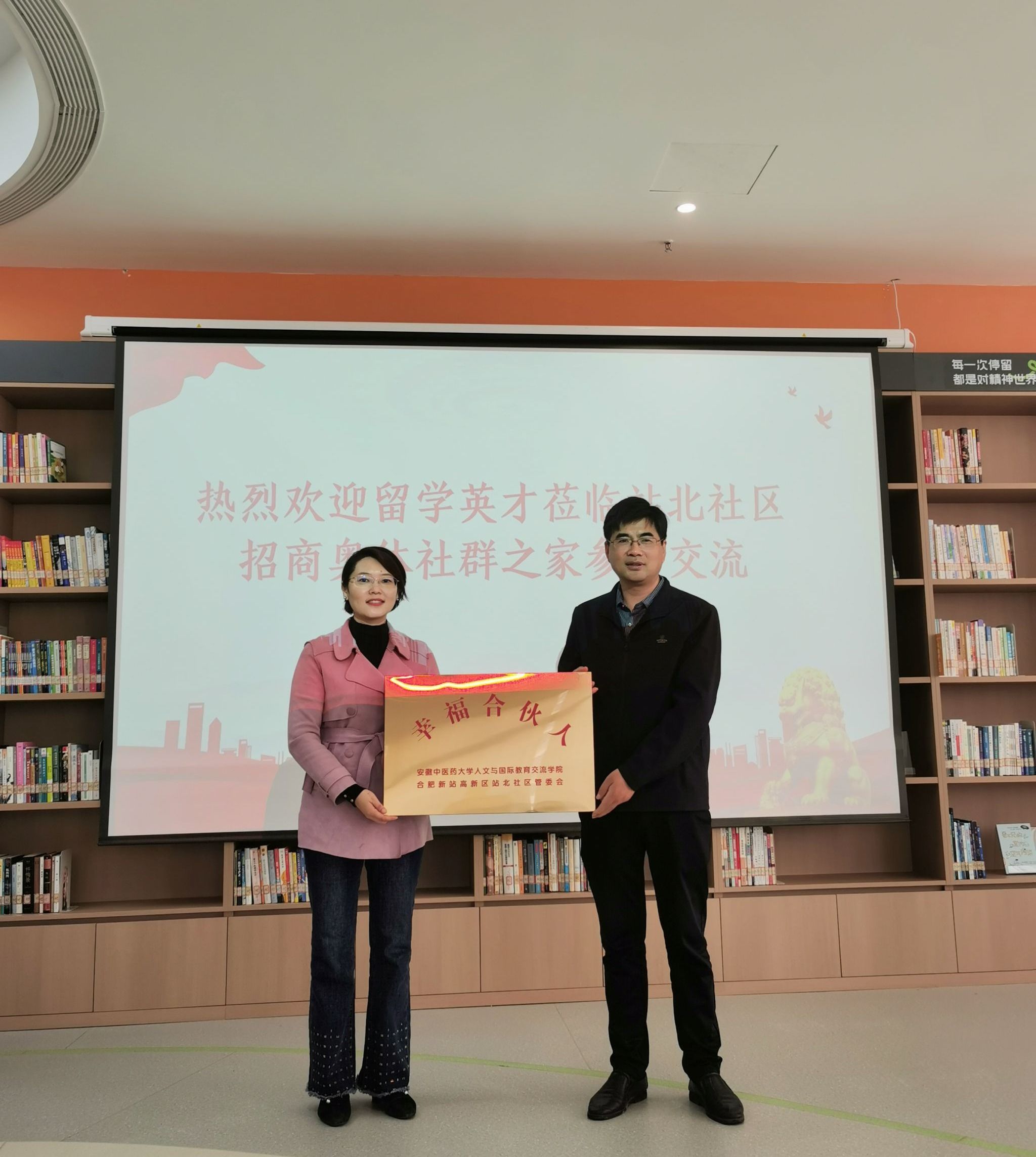 11月14日下午,人文与国际教育交流学院(外事办)与合肥新站高新区站北社区举行“幸福合伙人”共建仪式。站北社区党委书记许彩俊,学院党总支书记叶兰兰、团委书记王满、教工第四党支部书记许晶晶、留学生辅导员高辰及11名国际学生代表参加了仪式。