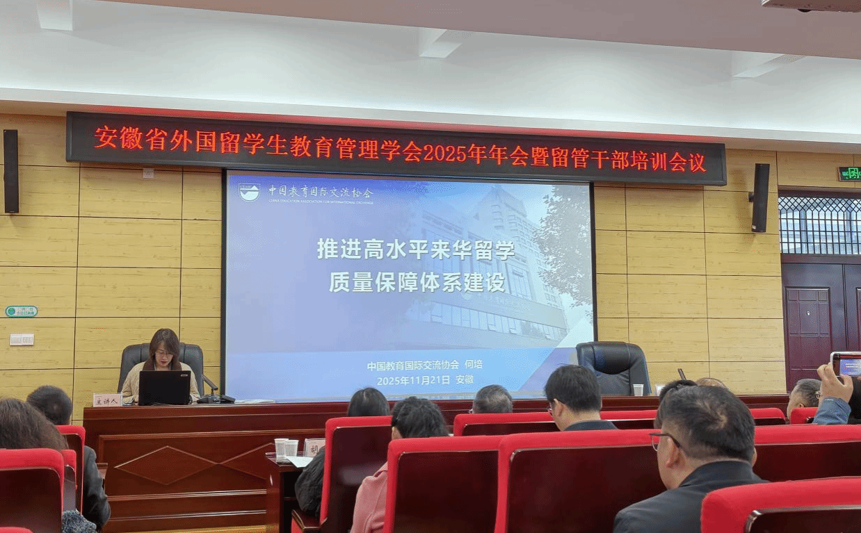 会上,安徽省外国留学生教育管理学会会长胡健教授主持年会,汇报了2025年学会的工作情况。中国教育国际交流协会跨境教育质量保障部何培主任作题为“推进高水平来华留学质量保障体系建设”的报告,为各高校留管工作明确了来华留学质量保障工作的方向。南京大学海外教育学院院长程爱民教授立足“一带一路”倡议,探讨了中国文化海外传播与国际人才培养的协同路径;宁波财经学院国际教育学院胡善贵教授基于科研的视角,作题为“保持初心,树立信心,做有思考的留管人”的交流分享。安徽省外办涉外领事处副处长杨进及合肥市公安局出入境管理支队副支队长杜杰结合典型案例,宣讲了相关政策和处置应对注意事项等。(图文/魏子琦 审核/叶兰兰)
