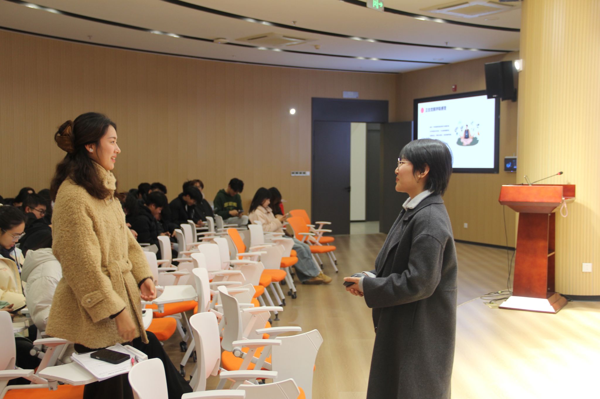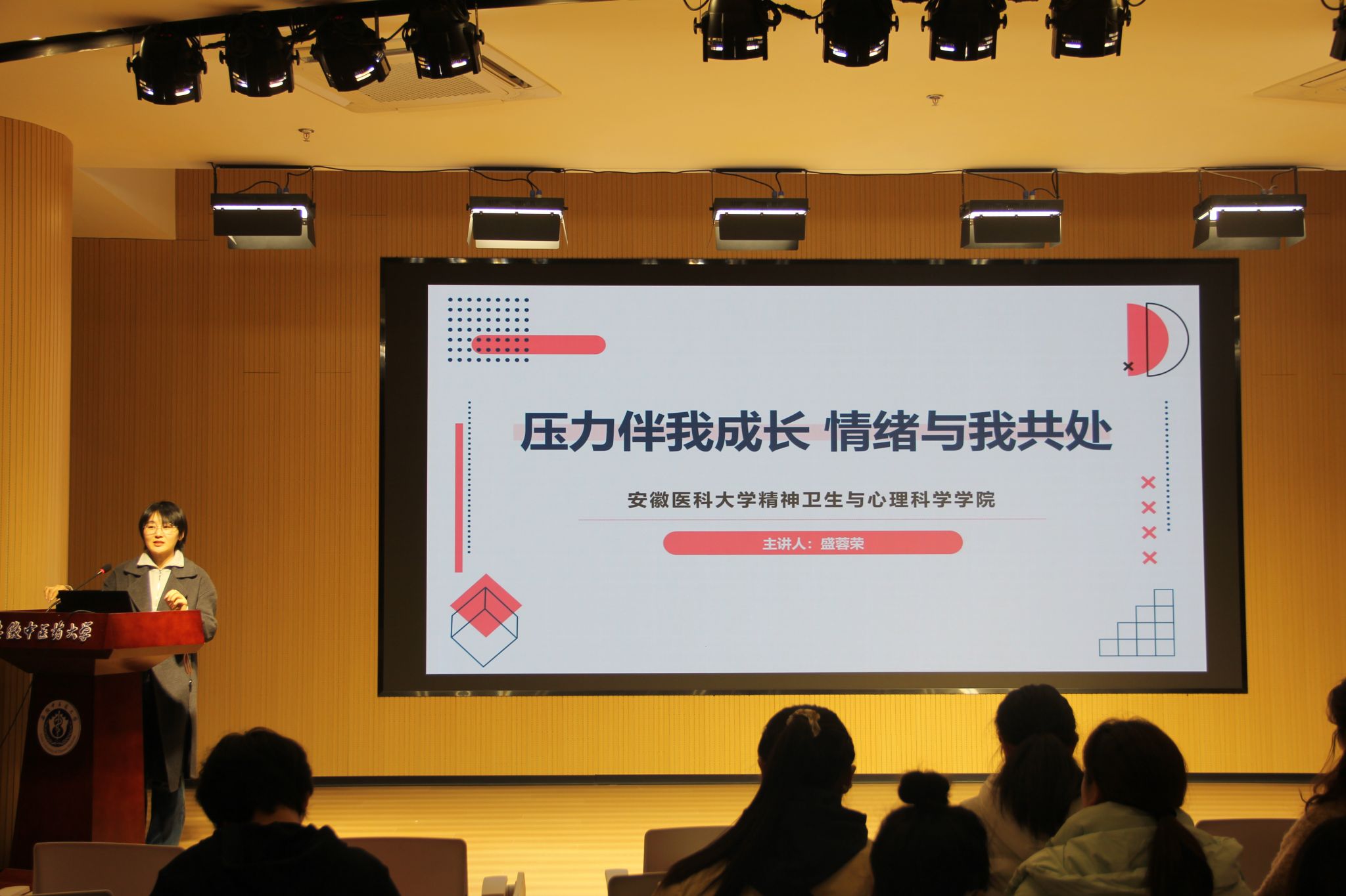 讲座中,盛蓉荣老师围绕《压力伴我成长,情绪与我共处》主题,结合自身专业知识与丰富案例,从压力的来源、情绪的识别与调节等方面进行了深入浅出的讲解,针对期末考试等特定场景,现场教授了简单实用的情绪疏导小技巧。