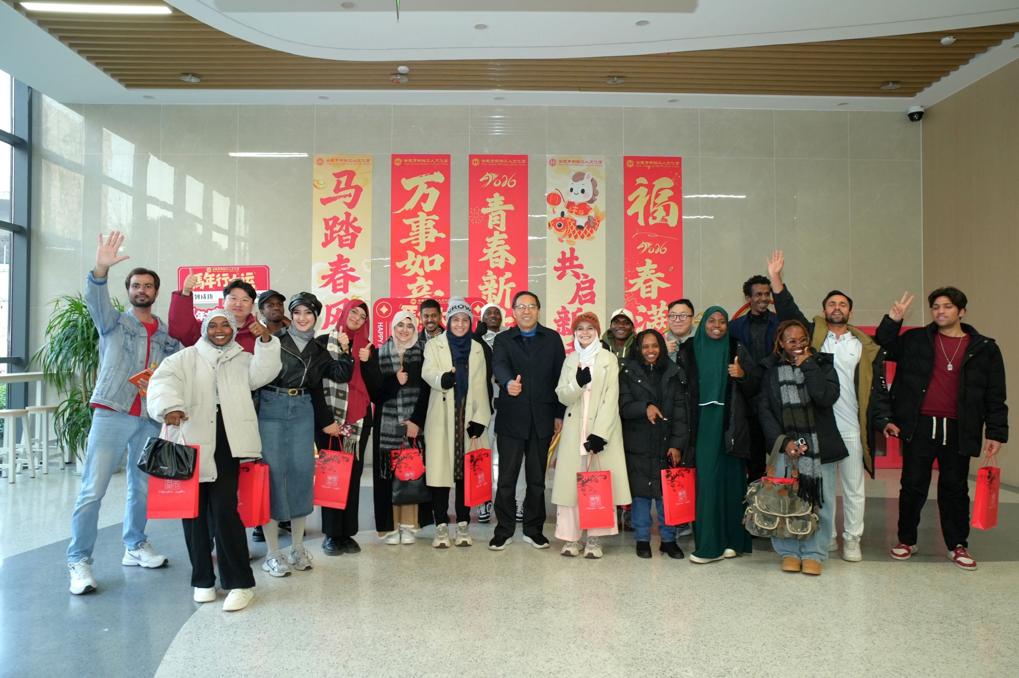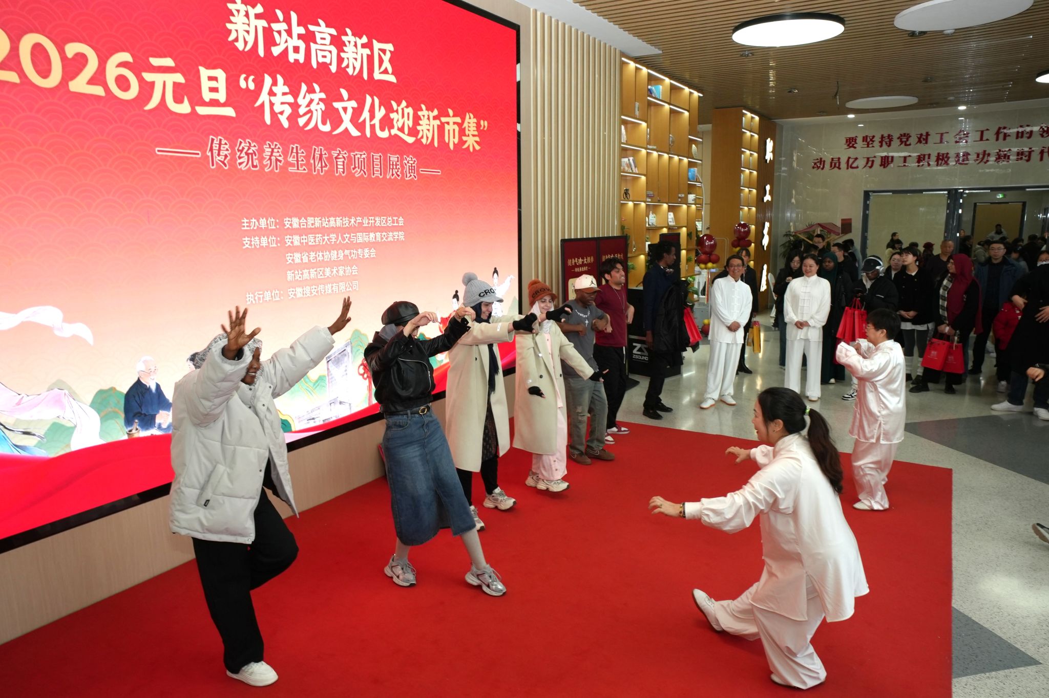 1月2-3日,人文与国际教育交流学院联合新站高新区总工会举办“传统文化迎新市集”活动,新站高新区50余组职工家庭和我校30余位中外学生齐聚一堂,共同解锁传统文化的深厚底蕴与生活智慧。