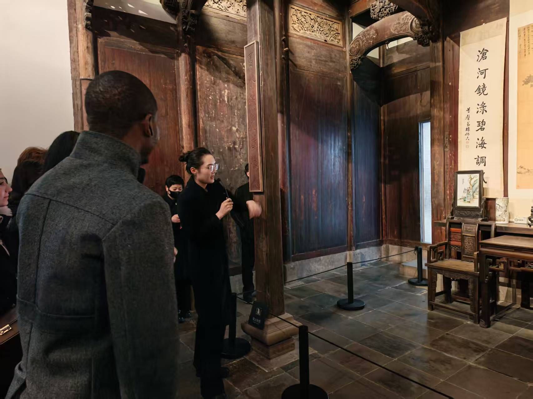在专业解说员的引导下,大家依次走进 “安徽文明史陈列” 与 “徽州古建筑陈列” 展厅。从商周青铜礼器的庄重纹饰,到明清徽州木雕的精巧工艺,一件件文物静静诉说着安徽大地的千年文脉。留学生们驻足凝视、频频提问,对中国一脉相承的历史脉络与深厚的文化积淀有了更直观的认知,也对安徽地域文化的独特魅力有了更深的感悟。