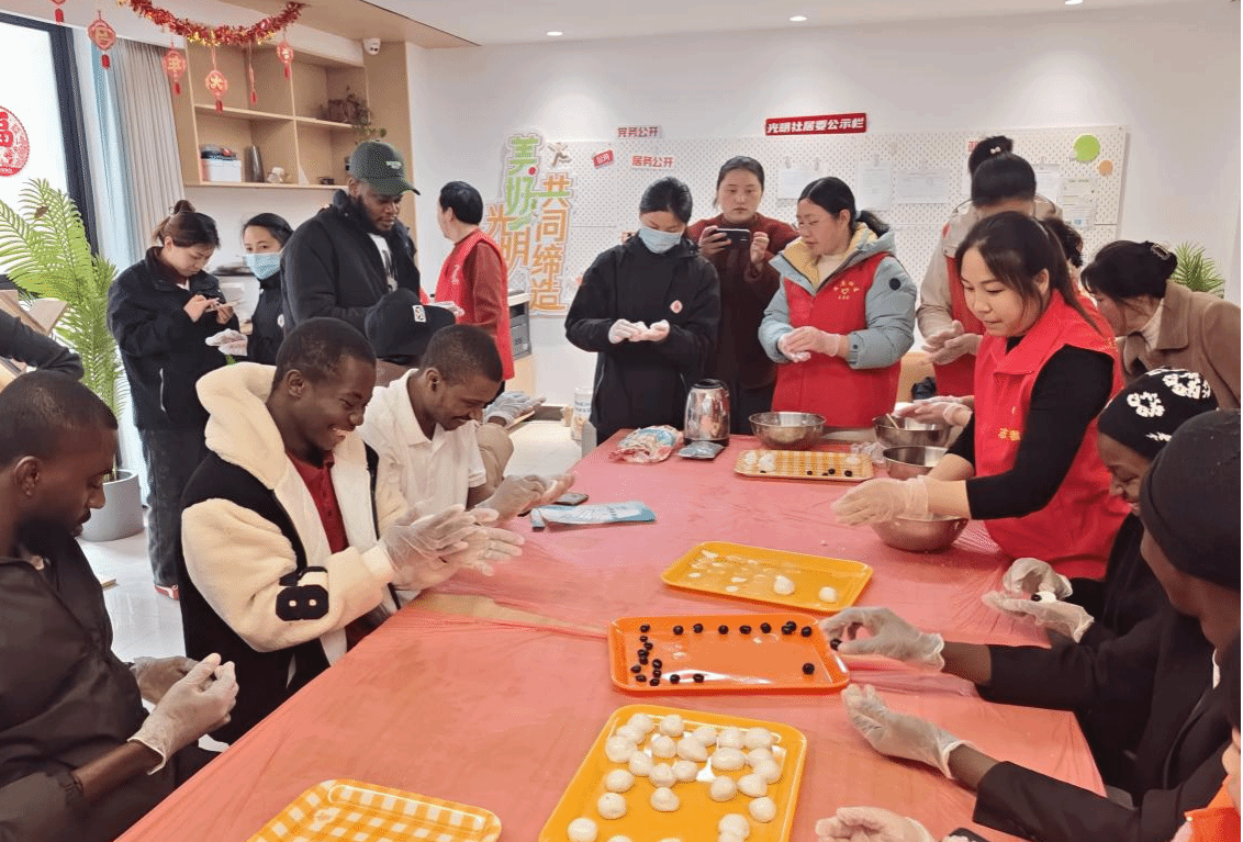 活动现场,学生们在社区居民的指导下认真学习揉面、包馅、搓圆的每一个步骤,大家围坐一桌、分工协作。热气腾腾的元宵出锅后,学生们品尝着自己亲手制作的元宵,在香甜滋味中体验到浓浓的节日氛围,更读懂了元宵“团圆”的美好寓意。互动游戏欢乐开启,简单的游戏没有语言隔阂,清脆的笑声、欢快的呐喊充满现场,孩子们的童真烂漫感染着大家,中外友谊在欢声笑语中悄然升温。
