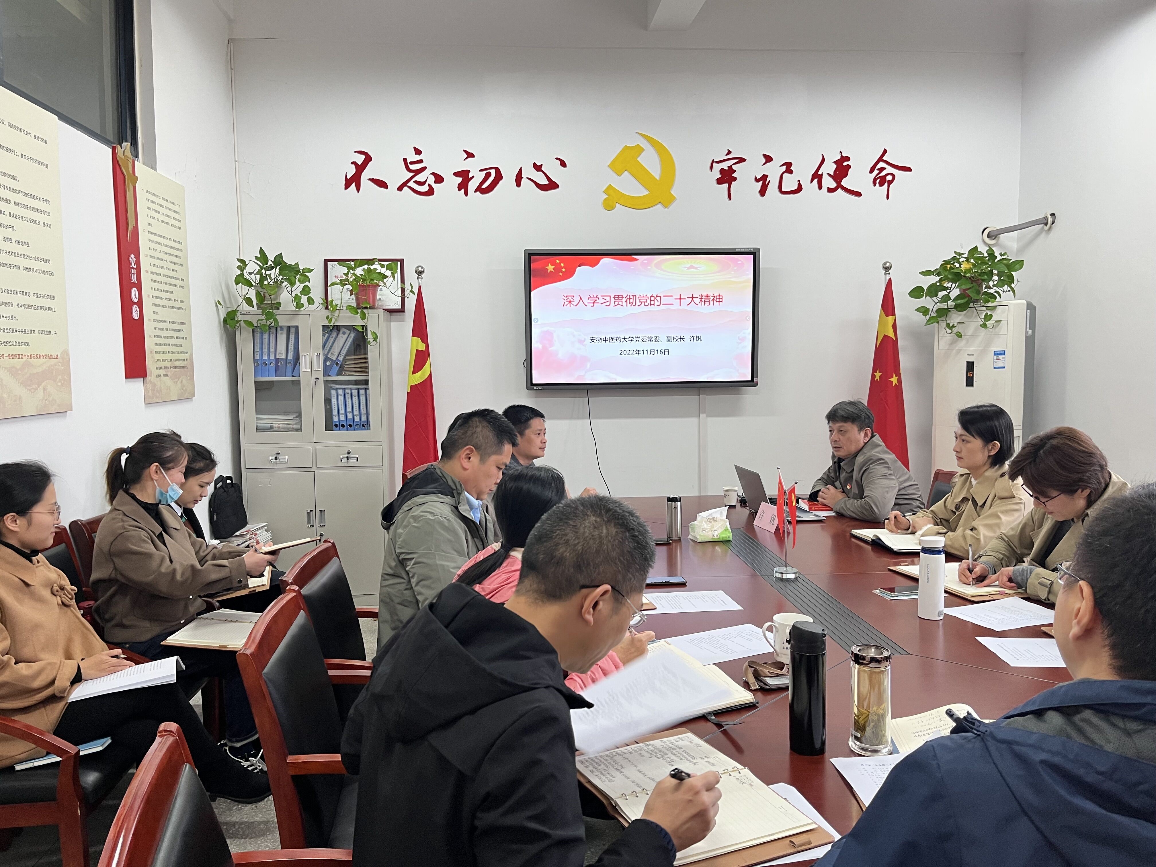 许钒校长在党课上强调,一、要深刻学习和贯彻党的二十大精神,感受珍惜祖国的强大与美好,坚定“四个自信”,并将正能量贯彻于教育教学工作中;二、要深刻学习和领悟党的二十大精神并作为每位教育工作者的行动指南,办好人民满意的教育;三、要在党的二十大精神指引下迎难而上、迎头赶上,做好学院一流本科专业建设和发展;四、要在党的二十大精神推动下踔厉奋发,促进中医药传承创新发展。