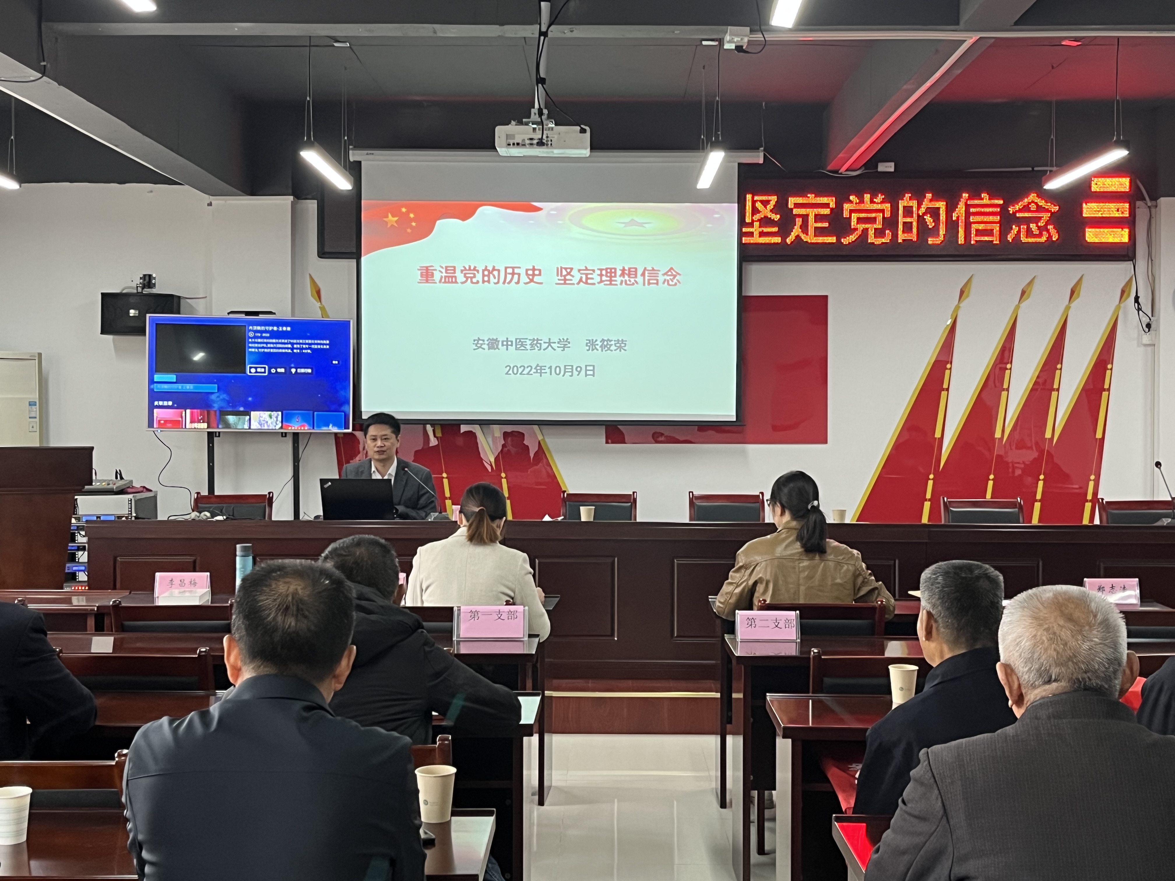 10月9日,人文与国际教育交流学院张筱荣老师来到王圩社区,以“重温党的历史,坚定理想信念”为题,为社区干部、各支部党员讲述了一堂意义深刻的专题党课。