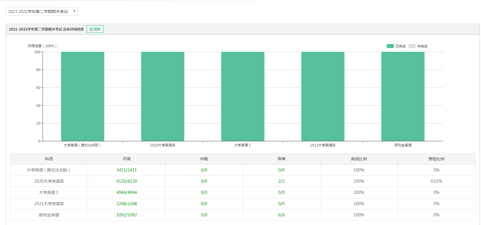 当然,由于本次大学英语网上阅卷是首次施行,阅卷任务分配方式还有待改进,阅卷质量检测和分析体系还有待完善,相信在校教务处和人文与国际教育交流学院的正确领导下,大学英语网上阅卷会越来越好。