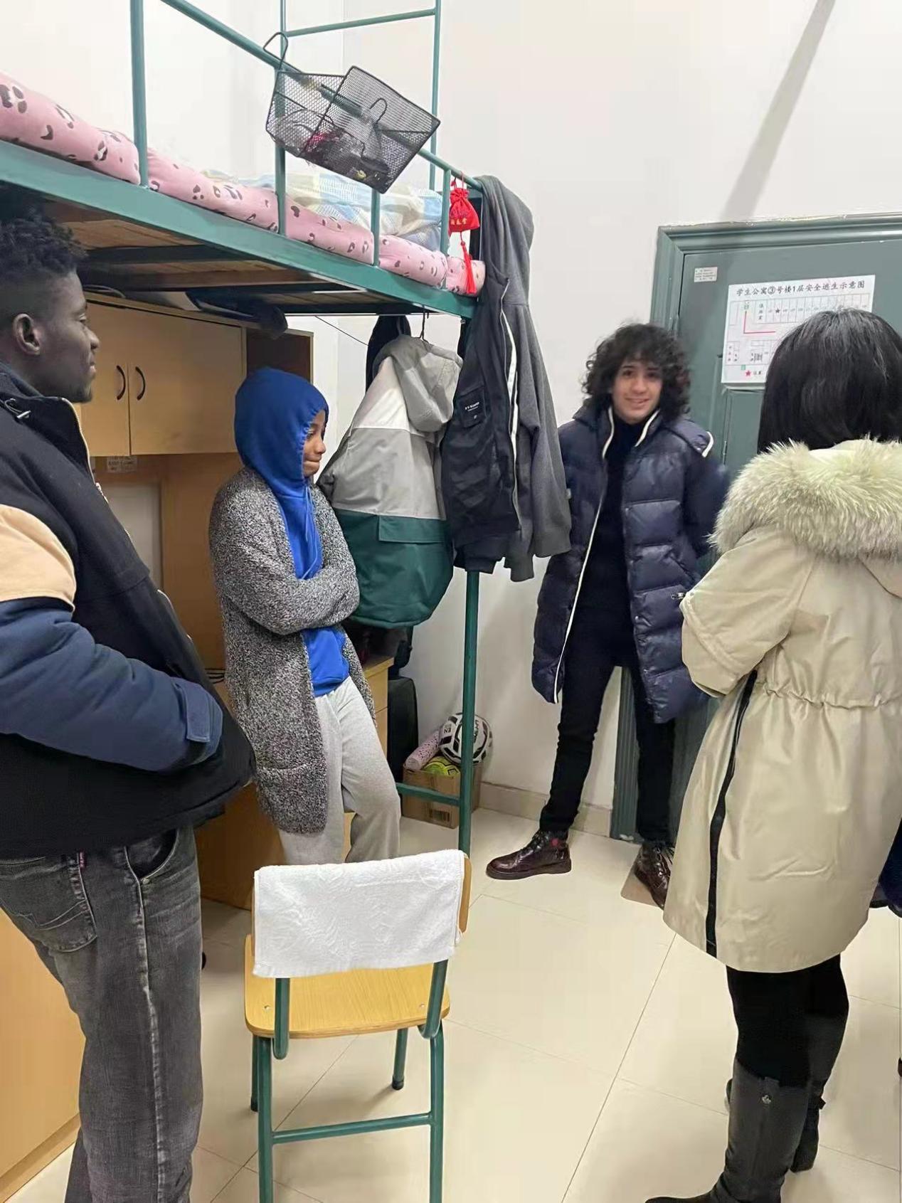 为落实好学校关于寒假校舍安全的精神要求,保障留学生的人身及财产安全、排查安全隐患,1月7日上午,人文与国际教育交流学院的境外学生老师赴留学生宿舍及校外住宿学生居住地开展安全大检查。