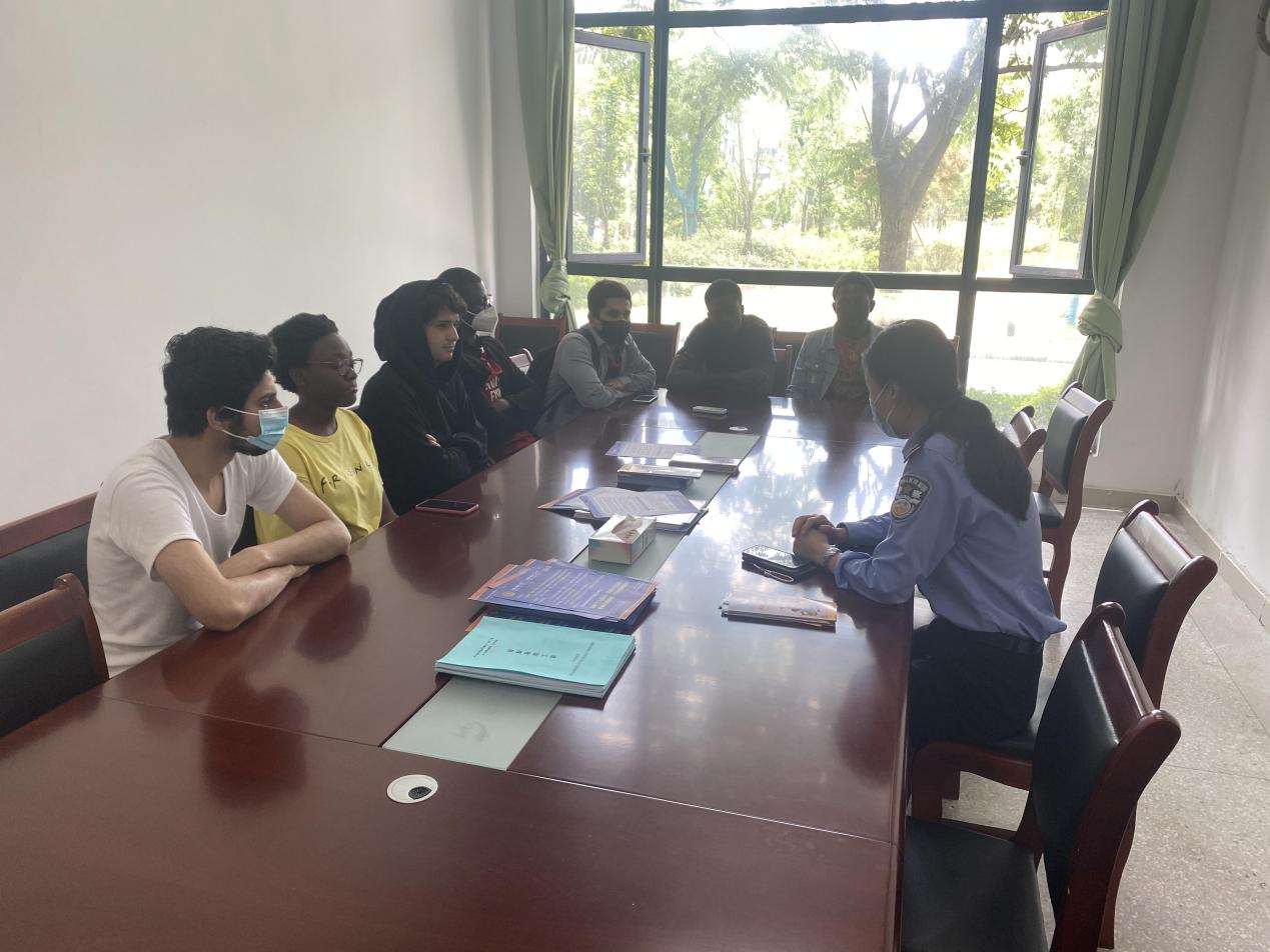 2021年5月25日下午,应人文与国际教育交流学院邀请,新站区磨店派出所外管警官来人文与国际教育交流学院做来华留学生安全教育专题讲座。