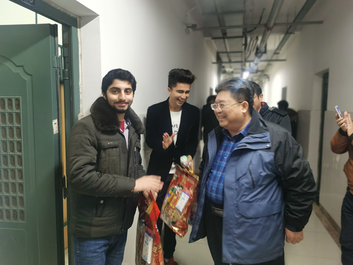 魏骅与留学生面对面亲切地交流,送上新春的祝福,希望同学们度过一个快乐平安的中国年,并为留学生发放新春礼物。留学生热情地用中文向学校和老师送上了新年祝福,对学校和老师长久以来给予的关心表示感谢。