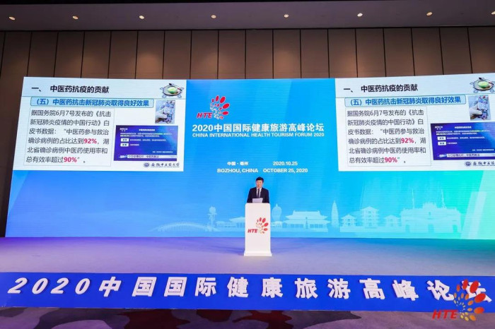 10月25日,2020年中国国际健康旅游高峰论坛在世界药都·养生亳州隆重举行。文化和旅游部副部长张旭、安徽省人民政府副省长王翠凤、亳州市人民政府市长杜延安出席论坛并致辞,中国旅游研究院院长戴斌、安徽省文化和旅游厅厅长袁华出席论坛。我校校长彭代银教授应大会邀请参会,并做题为“中医药健康旅游发展的时代沃土”的主题报告,阐述了中医参与抗疫情况、主要贡献以及中医药健康旅游的发展契机。
