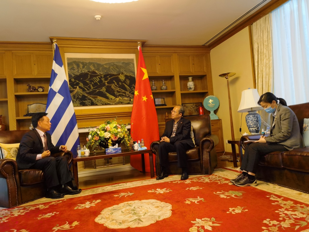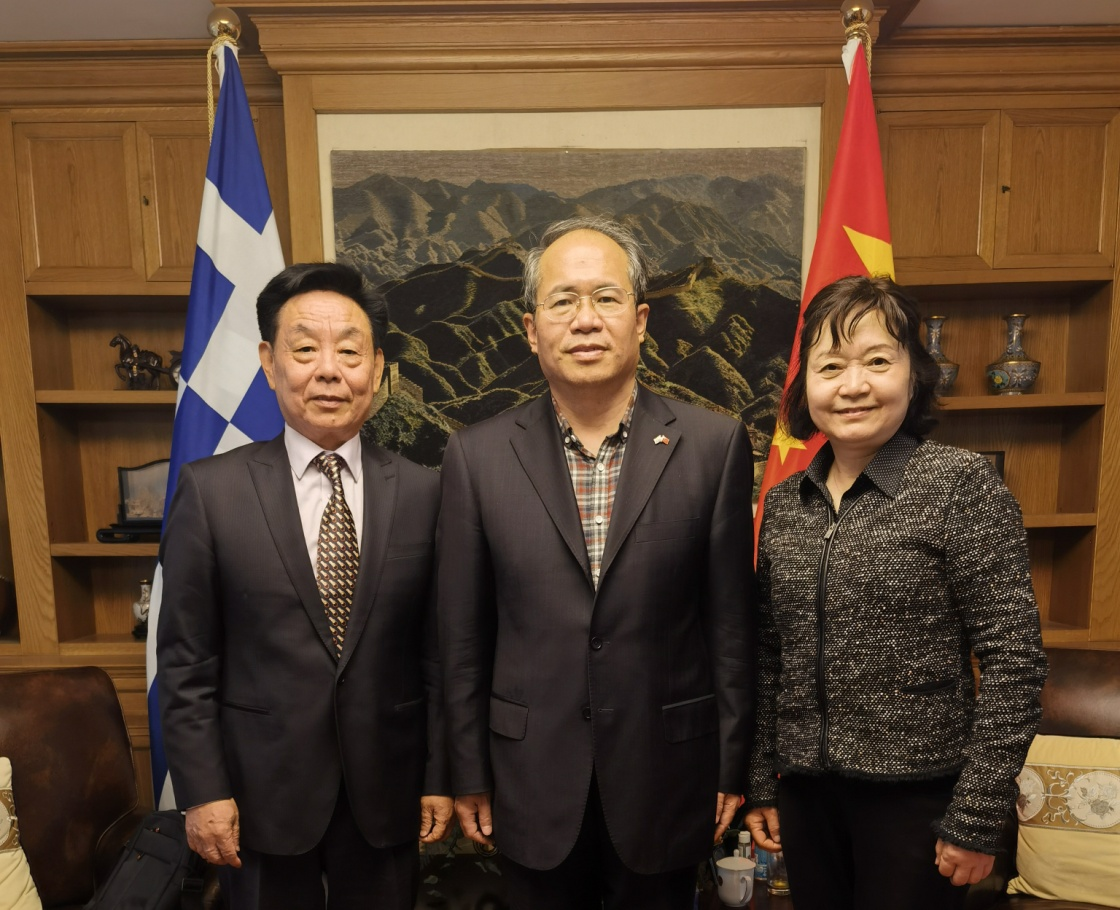 2023年5月15日下午,中国驻希腊大使肖军正亲切会见我校雅典中医药中心筹备组主任张展和相关工作人员。