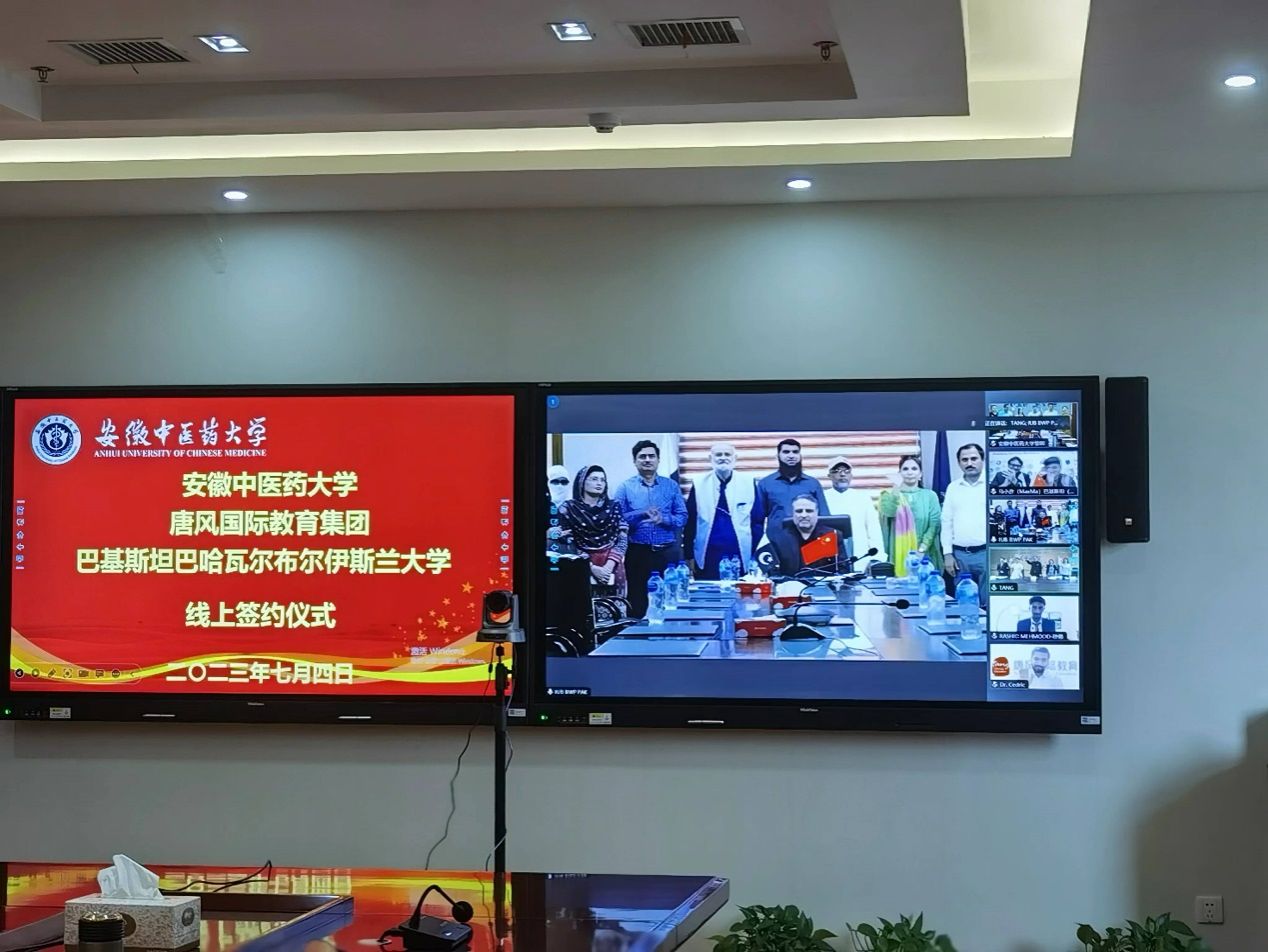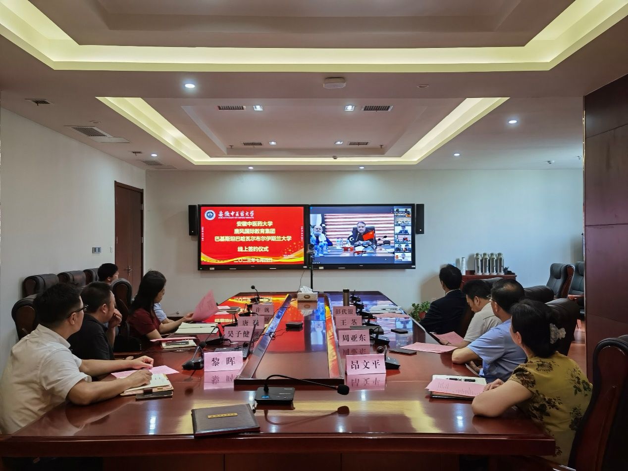 彭代银校长对唐风国际教育集团为前期筹备工作做出的努力表示感谢,他表示,中医药是中华文化的瑰宝并在抗击新冠疫情中发挥了重要作用。安徽省作为中国文化大省,是中华文明的重要发祥地,孕育了博大精深的徽文化,涌现出老子等一批著名历史人物。安徽省中医药事业有着悠久的历史,其中“南新安、北华佗”是安徽省中医药的特色和优势。他介绍到,安徽中医药大学建校于1959年,有着60余年的办学历史,是全国二十四所中医药大学之一,也是安徽省八所重点高校之一。学校拥有32个本科专业,4个博士学位授权点,3所直属附属医院和7所非直属附属医院,100多个实践教学临床基地,目前已和40多个国家和地区的50多个医疗和教育机构建立了友好合作关系。此次与巴哈瓦尔布尔伊斯兰大学建立合作,将共同推进国际中医药人才培养,促进两国政府、中巴人民之间的传统友谊。