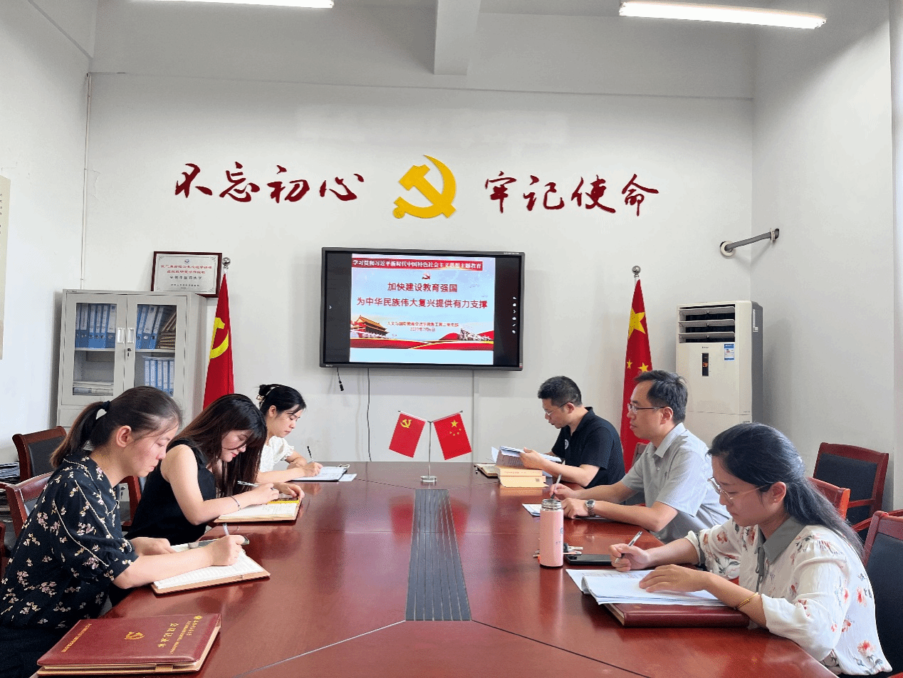 7月6日中午,人文与国际教育交流学院教工第二党支部在学院471党员活动室开展了“加快建设教育强国”主题教育。支部党员共同学习了《习近平在中共中央政治局第五次集体学习时强调 加快建设教育强国 为中华民族伟大复兴提供有力支撑》《中共中央国务院印发<深化新时代教育评价改革总体方案>》,充分认识到“教育兴则国家兴,教育强则国家强。建设教育强国,是全面建成社会主义现代化强国的战略先导,是实现高水平科技自立自强的重要支撑,是促进全体人民共同富裕的有效途径,是以中国式现代化全面推进中华民族伟大复兴的基础工程。”强教必先强师,党员教师纷纷表示要严格按照习近平总书记的指示,坚定理想信念、陶冶道德情操、涵养扎实学识、勤修仁爱之心,树立“躬耕教坛、强国有我”的志向和抱负,坚守三尺讲台,潜心教书育人,做人民满意的好老师,积极投身教育强国实践,为教育强国事业作出自己的贡献。