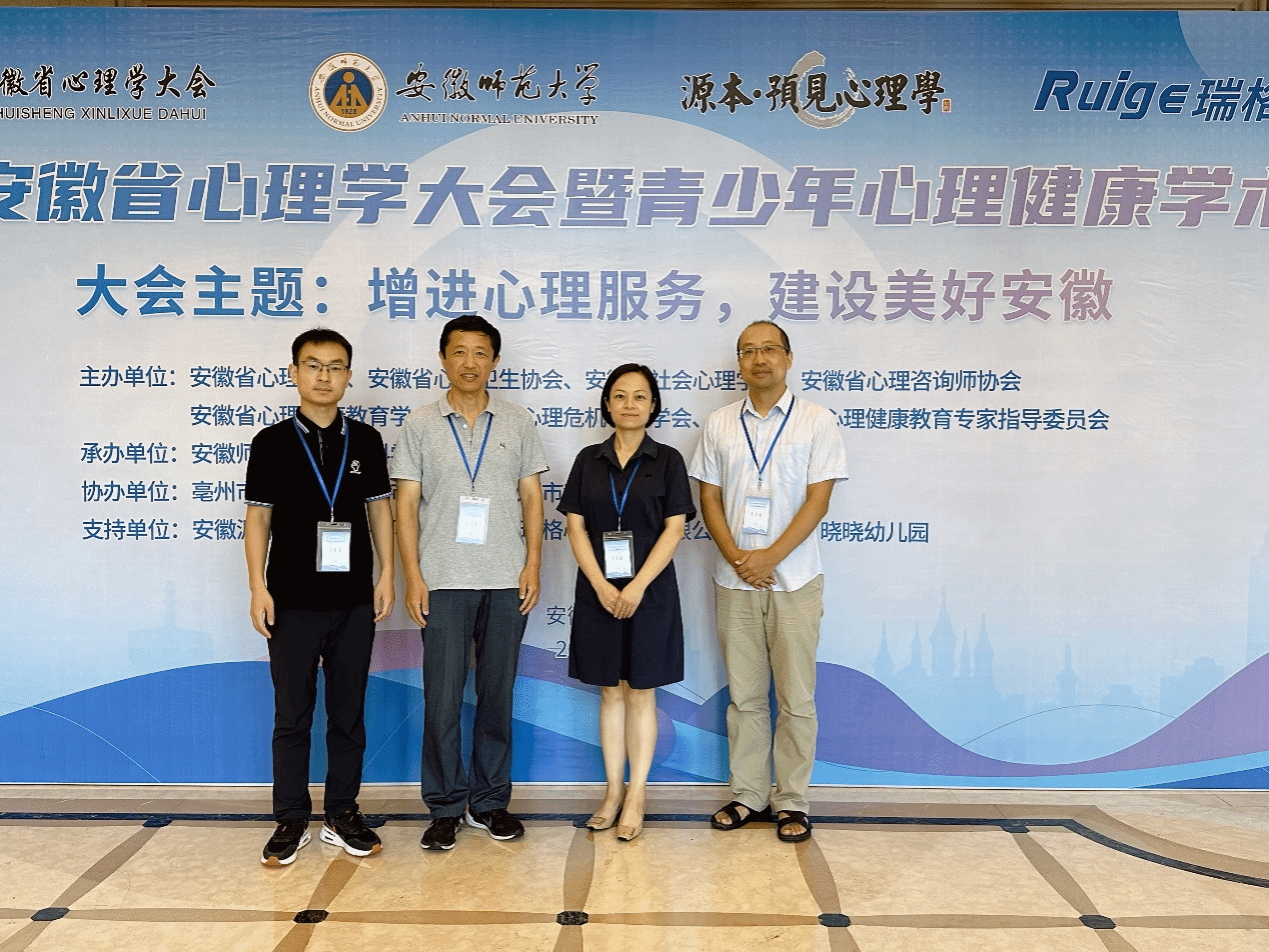 8月12-13日,第一届安徽省心理学大会暨青少年心理健康学术论坛在芜湖召开,大会由安徽省心理学会、安徽省心理卫生协会、安徽省社会心理学会、安徽省心理咨询师协会、安徽省心理健康教育学会、安徽省心理危机干预学会、安徽省学生心理健康教育专家指导委员会联合主办。人文与国际教育交流学院党总支书记金晓琴、心理学系教师王平、张俊杰、许胜参加本次大会。