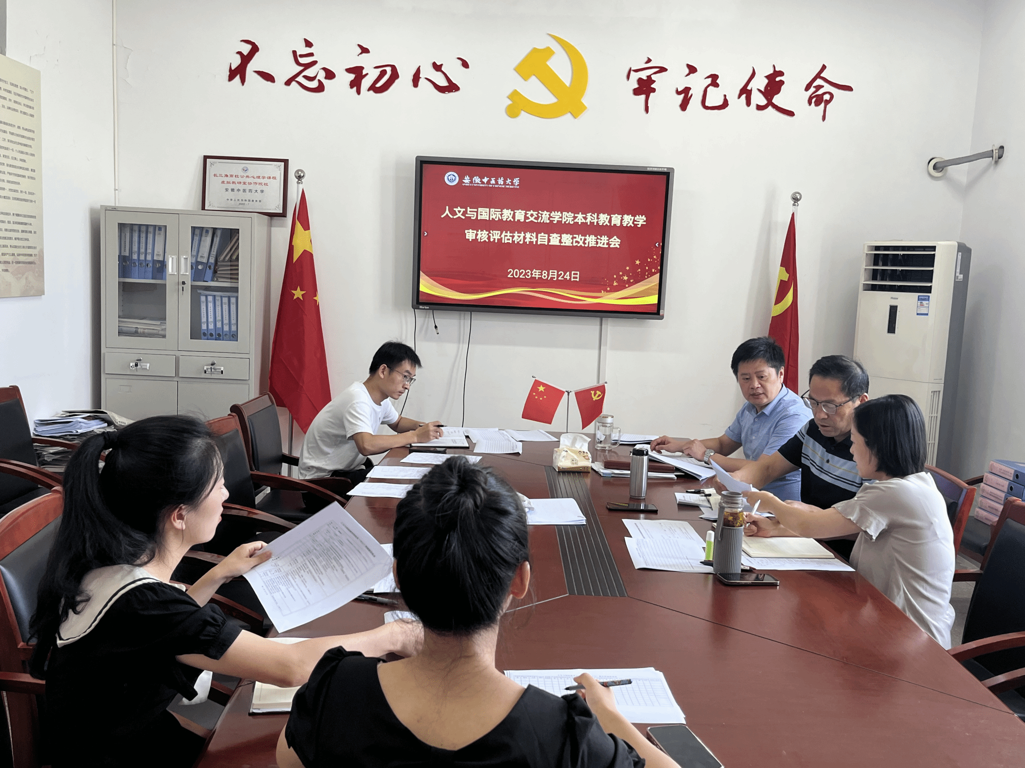 为进一步落实自评自建专项检查的要求,8月24日上午,人文与国际教育交流学院在471会议室召开本科教育教学审核评估材料自查整改推进会,院领导、各行政科室负责人、各系(中心)主任、副主任、秘书参加会议,会议由学院院长周亚东主持。