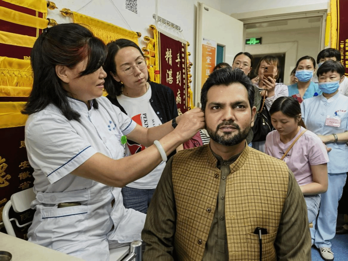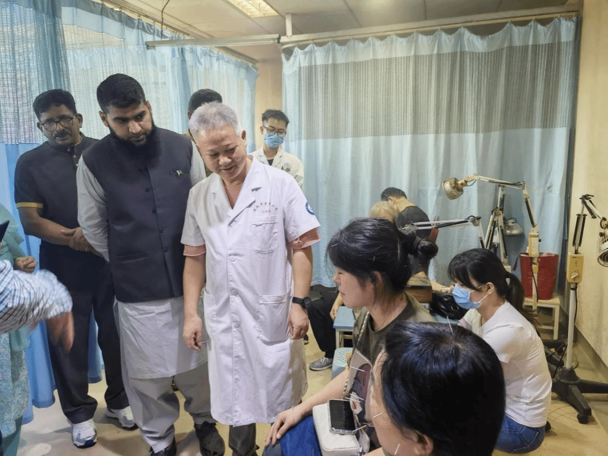 8月29日,IUB大学代表团参访了我校第一、第二附属医院。在第一附属医院,参观了中草药房,中医特色护理门诊以及内分泌科病区,体验了耳穴埋豆等中医特色治疗项目;在第二附属医院,参观了医院门诊针灸名医的诊室,观摩了火针、小针刀等中医特色诊疗方法,在医院文化长廊听取了院史和中医药、针灸发展史的介绍,在康复治疗中心亲身体验了推拿、针灸治疗。莫阿扎姆·贾米尔一行被中医药文化的魅力所深深吸引,对中医药特色治疗表示了由衷的钦佩和赞叹,并希望有更广阔的合作空间和更紧密的联系。