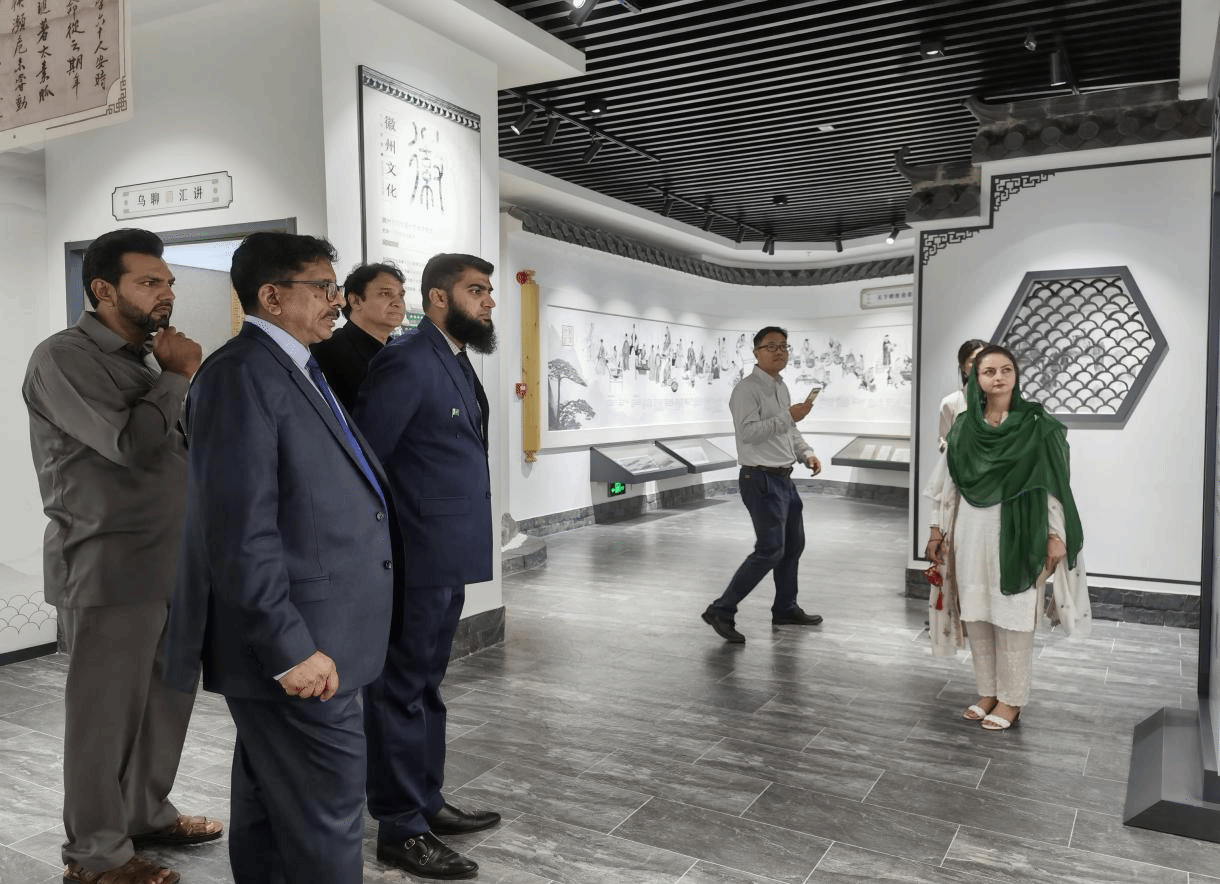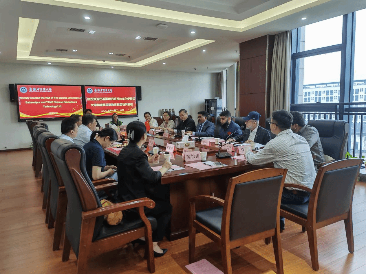 2023年8月28日,巴基斯坦巴哈瓦尔布尔伊斯兰大学(IUB)副校长一行6人和北京唐风国际教育集团总裁李劲松一行3人来我校参观访问。