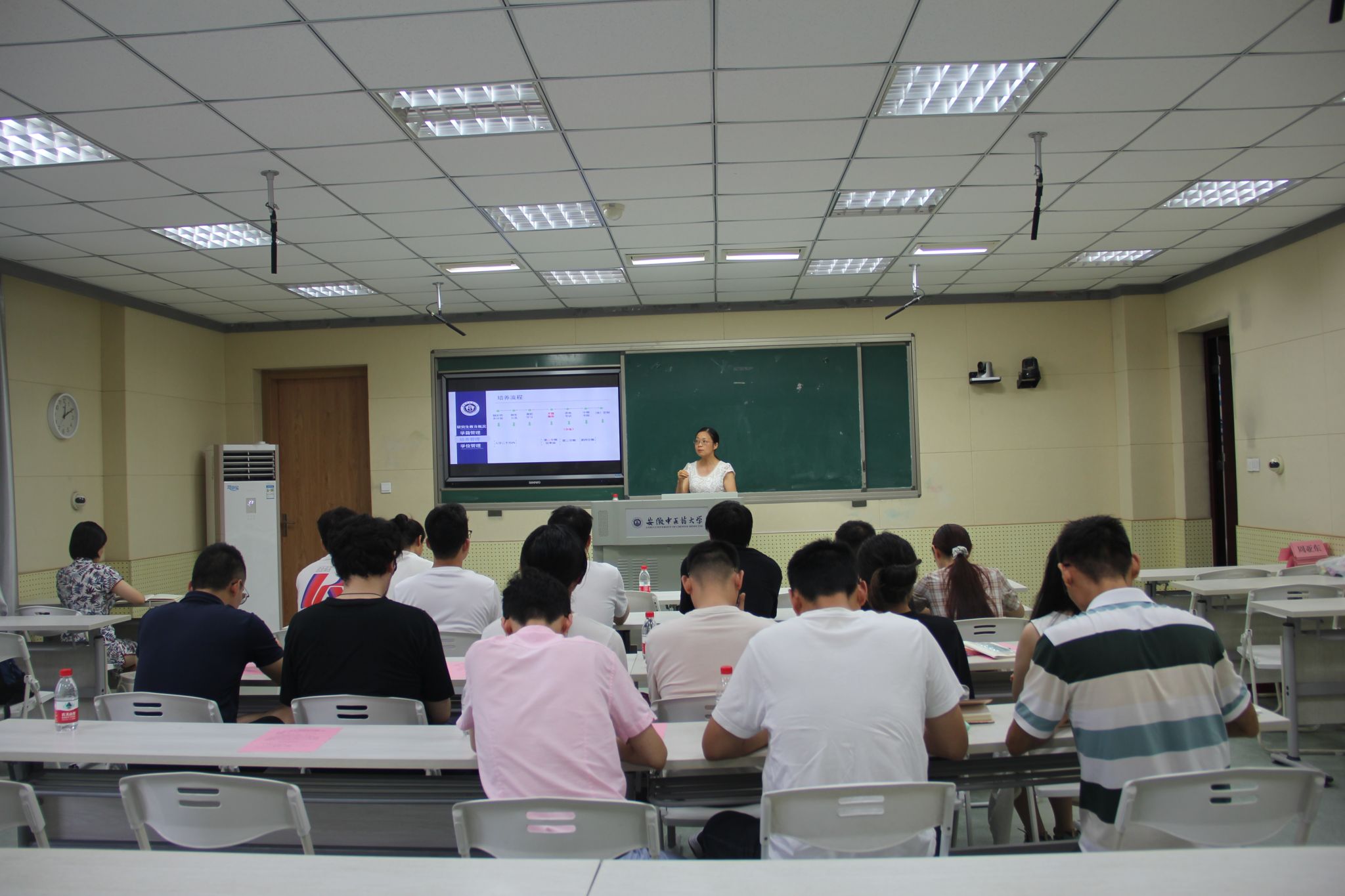 会议第二个阶段为入学教育专题培训,濮燕屏从研究生教育概况、培养管理、学籍管理、学位管理四方面对学校研究生教育管理的各项要求做了详细介绍,她强调要多读文献,提前规划好研究方向,注重学位论文的撰写过程和注意事项;最后,辅导员就校园安全、相关规章制度、防范电信诈骗等工作做了具体要求。