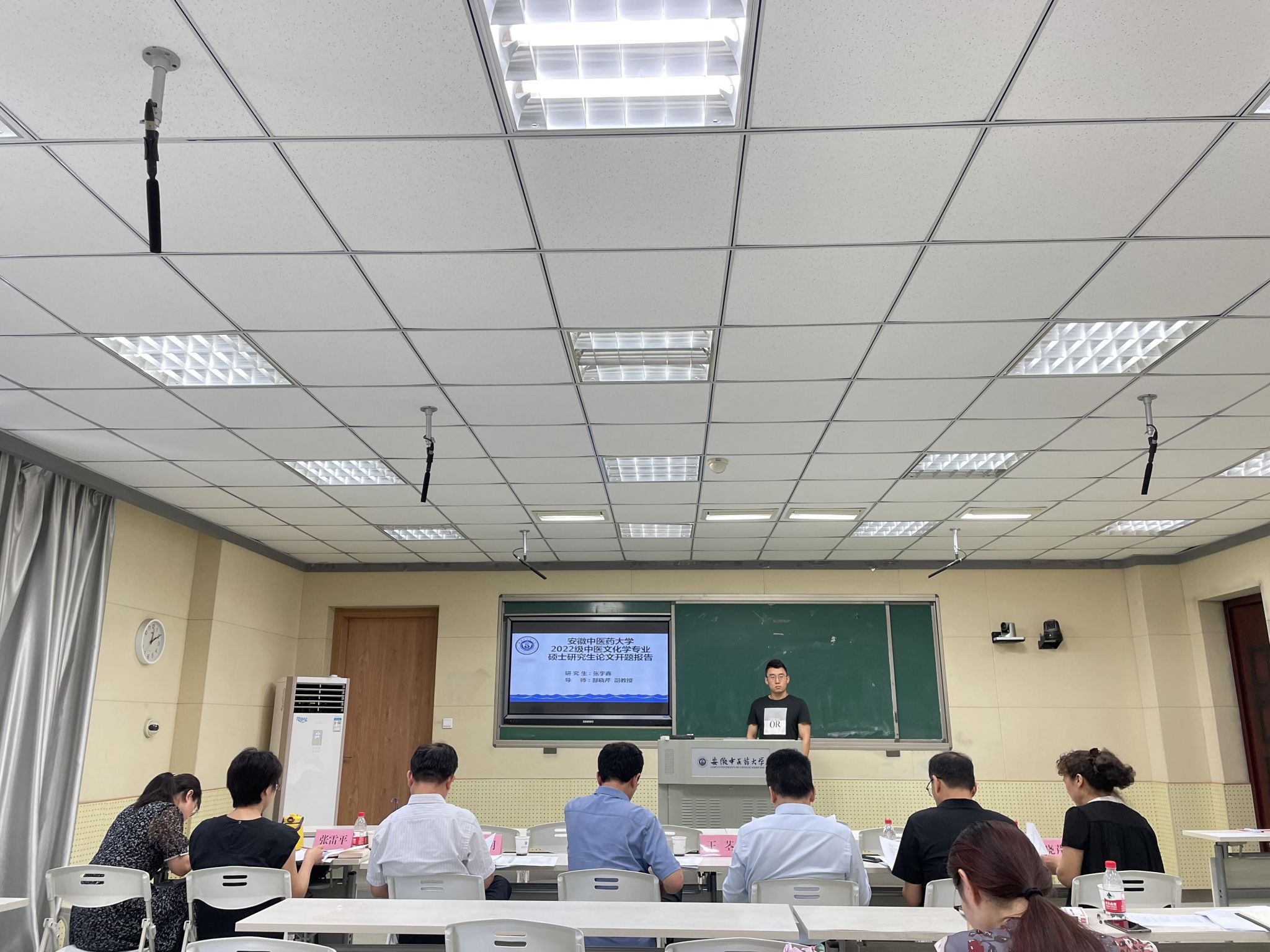 根据学校研究生院《关于做好2023年度研究生学位论文开题工作的通知》文件精神,9月8日上午,人文与国际教育交流学院在惟新楼376室召开2022级研究生开题报告会。会议由研究生院院长王鹏主持,学校教务处处长王茎、中医学院院长方向明和学院硕士生导师周亚东、张雷平、严家凤、郜晓芹对研究生开题报告进行评议。全体2023级研究生参会观摩学习。