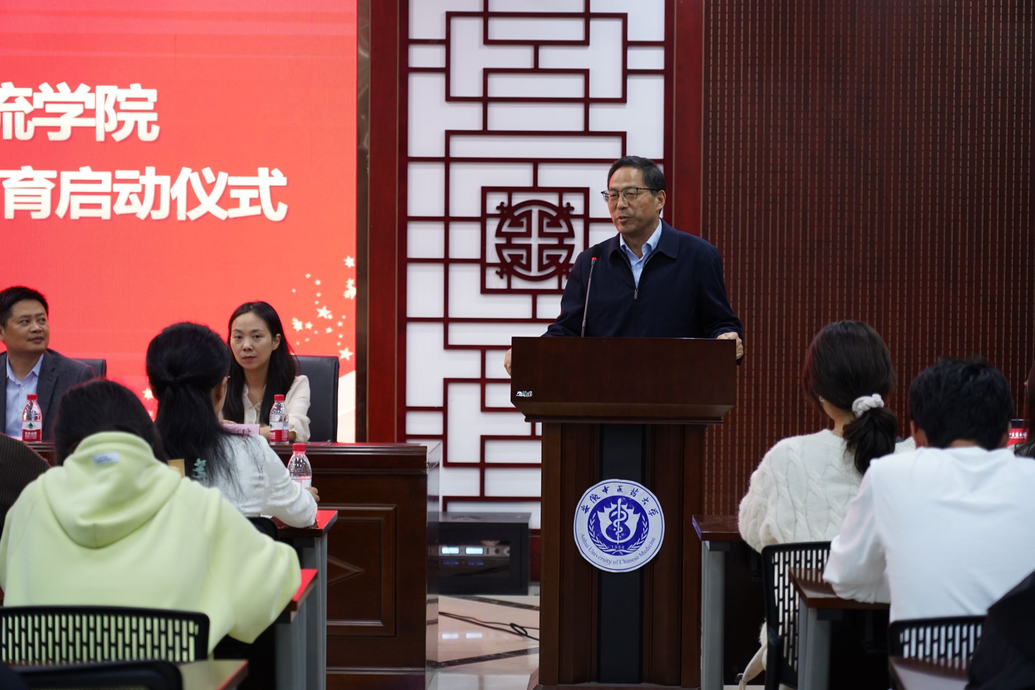典礼伊始,全体师生齐唱国歌。在庄严肃穆的国歌声中,学院开学典礼暨入学教育启动仪式拉开帷幕,院长周亚东代表学院对125名2023级人文新学子的到来表示热烈的欢迎,对同学们提出三点希望:一是要加强政治素养,厚植爱国情怀,树立崇高理想,追求卓越人生;二是要提升道德素养,崇德向善,学会与人相处,铸就高尚人格;三是要关注身心健康,加强体育锻炼,培养积极自信乐观心态。希望2023级新生能够深耕专业,为传承发展好中医药文化,讲好中国故事、传承好中国声音、服务人民大众心理健康持续贡献青年能量。