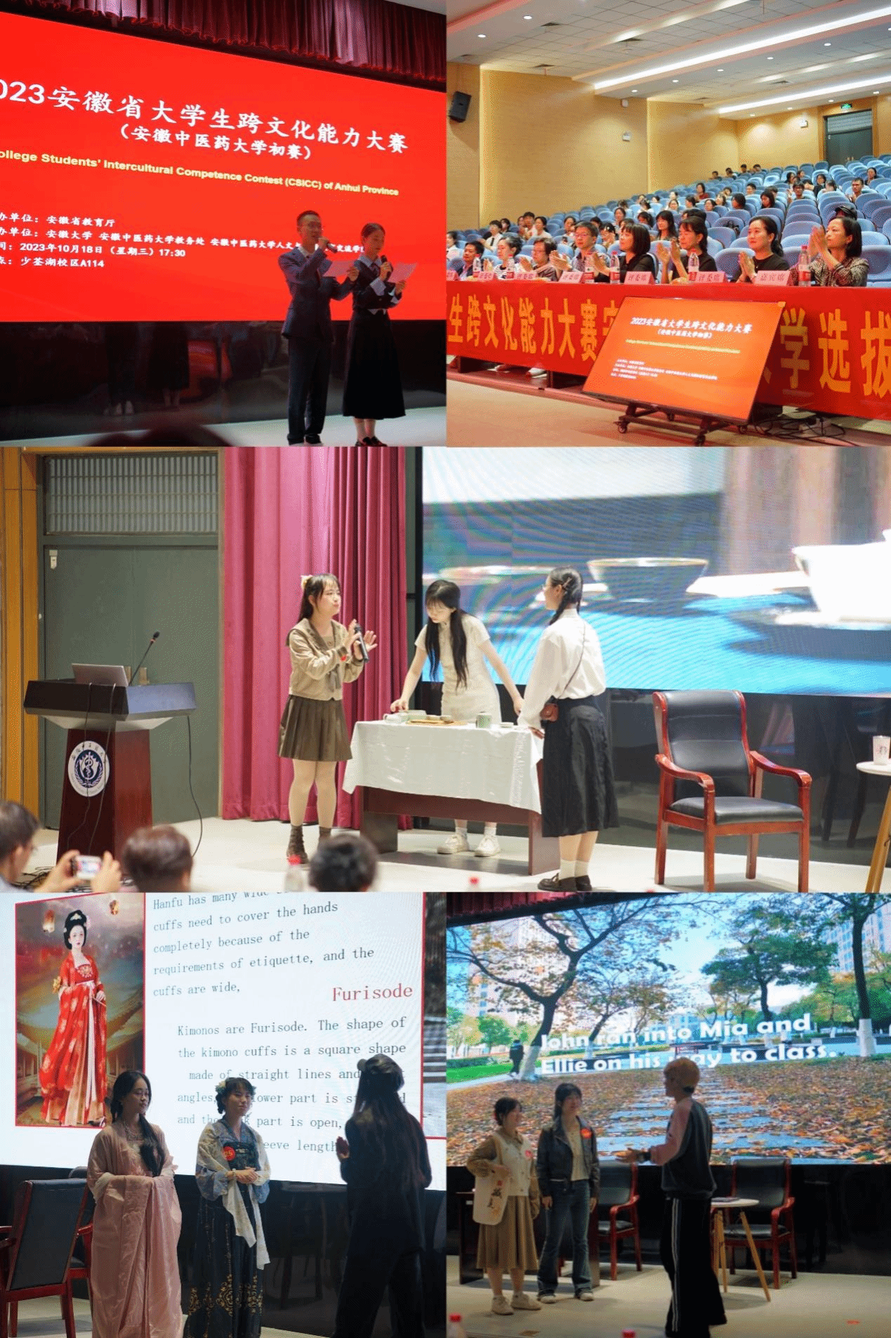 为进一步落实立德树人根本任务,全面推进《习近平谈治国理政》多语种版本“三进”工作,深化新时代外语教育改革和外语课程思政建设,提升新时代大学生核心素养和综合外语能力,讲好中国故事安徽篇章和徽风皖韵的外语诠释,培养更多具有家国情怀、全球视野和专业本领的复合型人才,10月18日晚,“2023年安徽省大学生跨文化能力大赛”安徽中医药大学选拔赛在我校至诚楼A114报告厅圆满落幕。