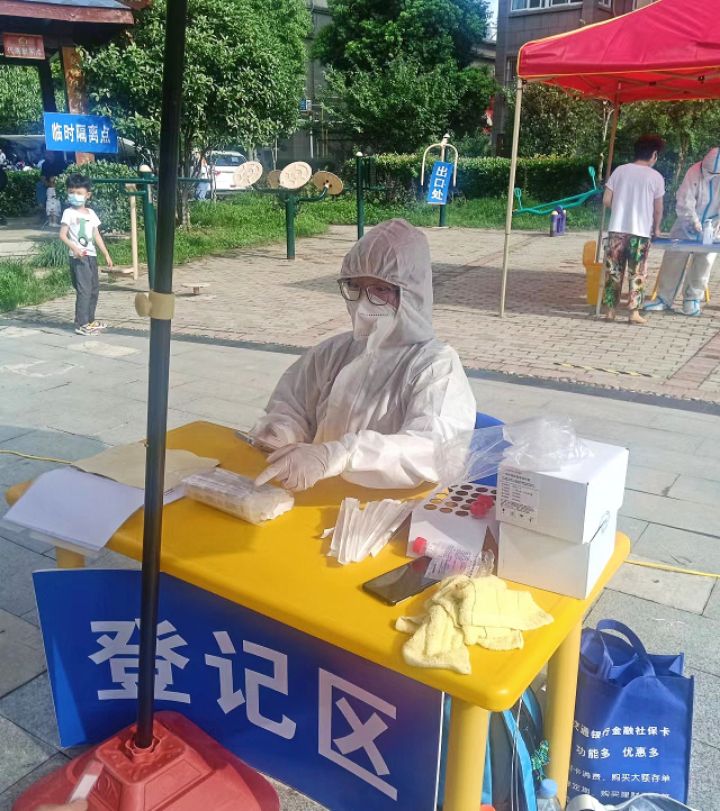 2.参与社区疫情防控志愿活动,齐心抗疫。在7月16日至7月21日期间,实践队员参与了安徽省蚌埠市蚌山区黄庄街道朝阳社区的疫情防控志愿服务活动,因7月15日蚌埠市怀远县突增151例初筛阳性人员,因此蚌埠市市区紧急开展区域核酸检测,队员主要负责工作任务是核酸信息登记,在社区指定核酸检测区域,要求每位来检测的市民有序出示“皖事通APP”中的核酸检测预登记二维码(或安康码),若有老人或小孩无安康码,则可出示本人身份证、户口本,对其进行核酸信息登记,登记好信息后方可继续后续采样等工作。