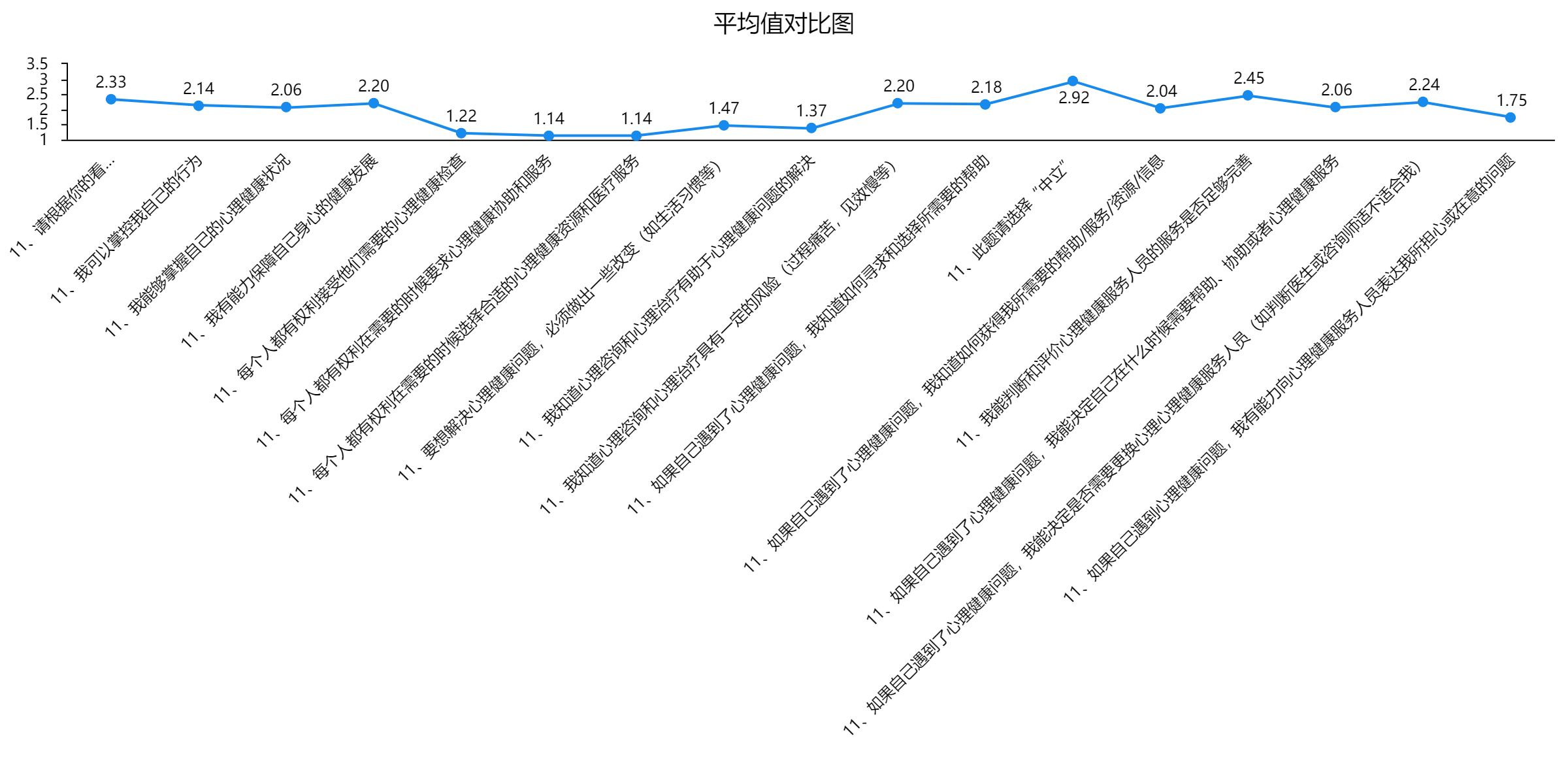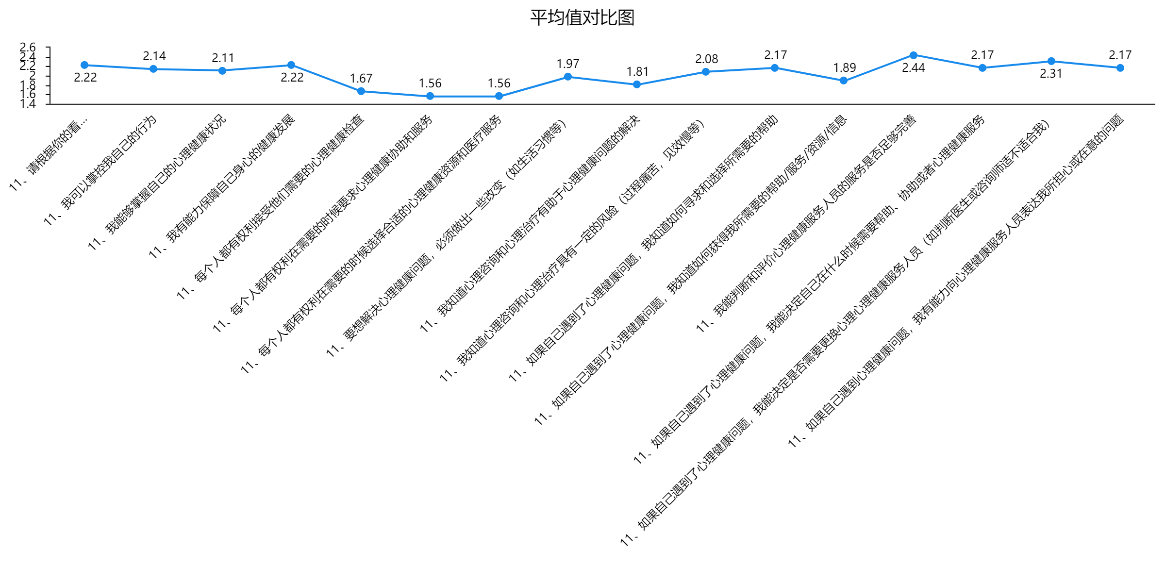 从图中可以看出,所有题目的平均值都在2.5以下,且此题高一高二受测结果分布差异较小,说明受测同学对以上心理健康相关问题有一定程度的了解,对自身心理健康有一定了解和把握。