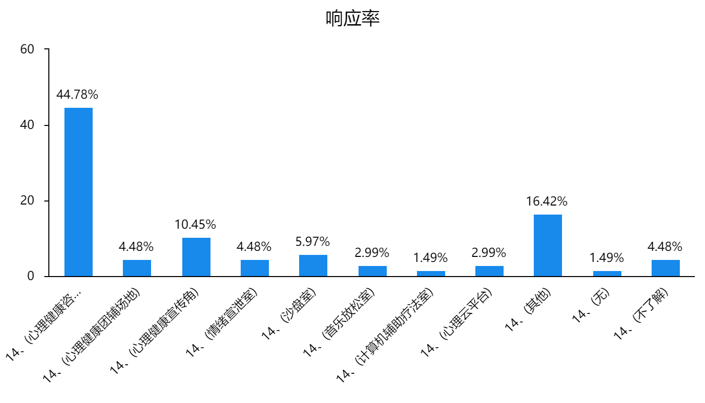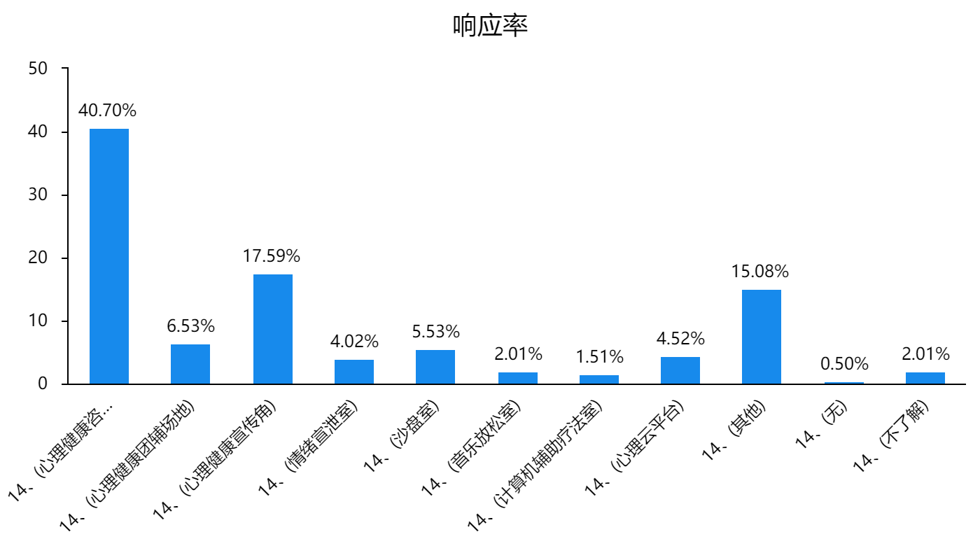 选项:心理健康咨询室、心理健康团辅场地、心理健康宣传角、情绪宣泄室、沙盘室、音乐放松室、计算机辅助疗法室、心理云平台、其他、无、不了解。