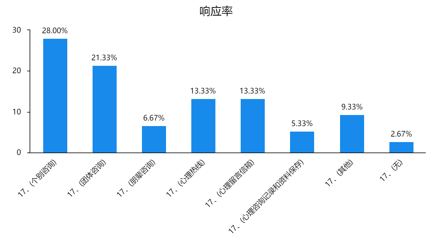 选项:个别咨询、团体咨询、朋辈咨询、心理热线、心理留言信箱、心理咨询记录和资料保存、其他、无。
