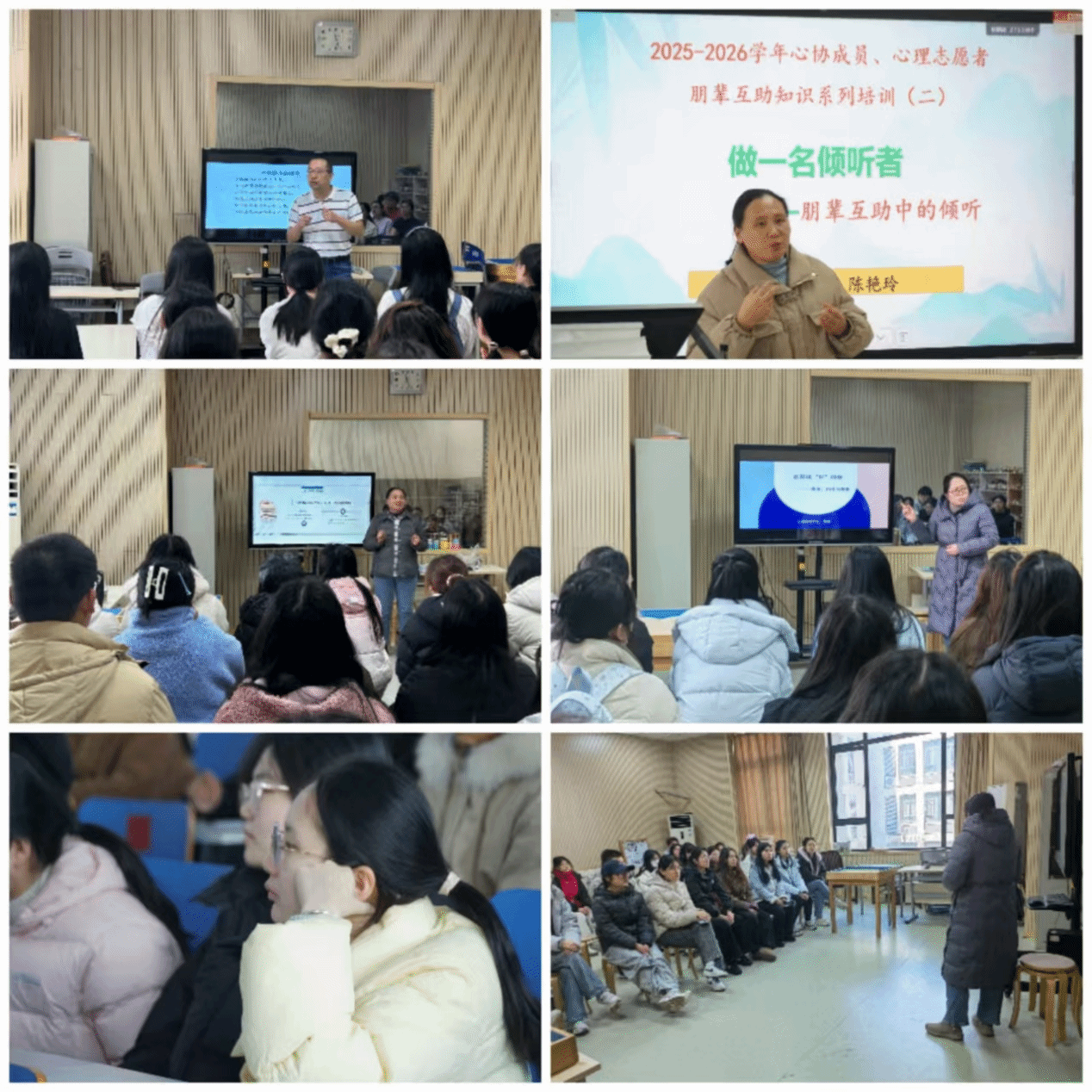 本次培训从9月份开始,心理咨询中心陈艳玲、张俊杰、顾琼三位老师主讲了4场讲座,聚焦心理健康问题、朋辈互助作用、如何更好倾听以及讨好-焦虑与投射等方面的内容,吸引了来自各学院的志愿者、爱好者、心理骨干和心协会员等近200人次参与,凝聚了师生心理健康服务的共识。下一阶段,心理咨询中心将继续携手志愿者,以“专业+朋辈”共筑校园心理支持网络,守护每一颗向阳而生、青春绽放的心灵。(张俊杰/文 图 叶兰兰/审核)