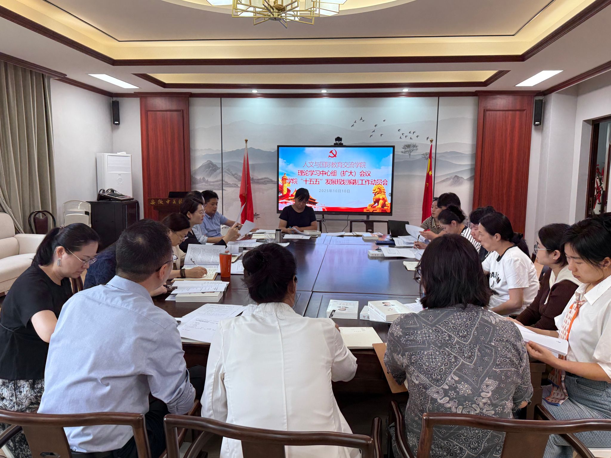 10月10日下午,人文与国际教育交流学院党总支召开第九次理论学习中心组(扩大)会议暨“十五五”规划编制启动会,学院领导班子、“十五五”规划编制小组成员参加了学习研讨。